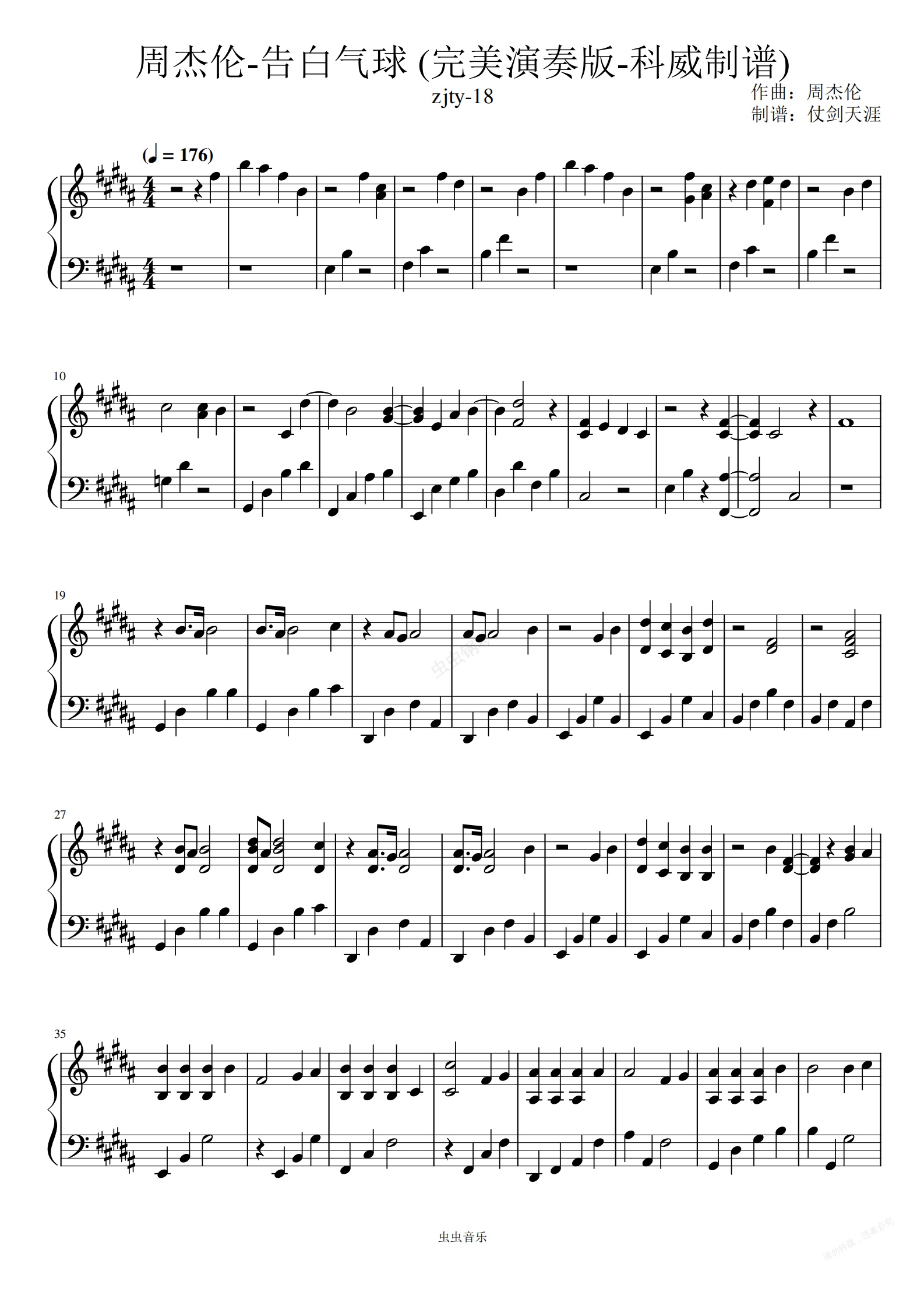 钢琴谱:周杰伦-告白气球 (完美演奏版-科威制谱)