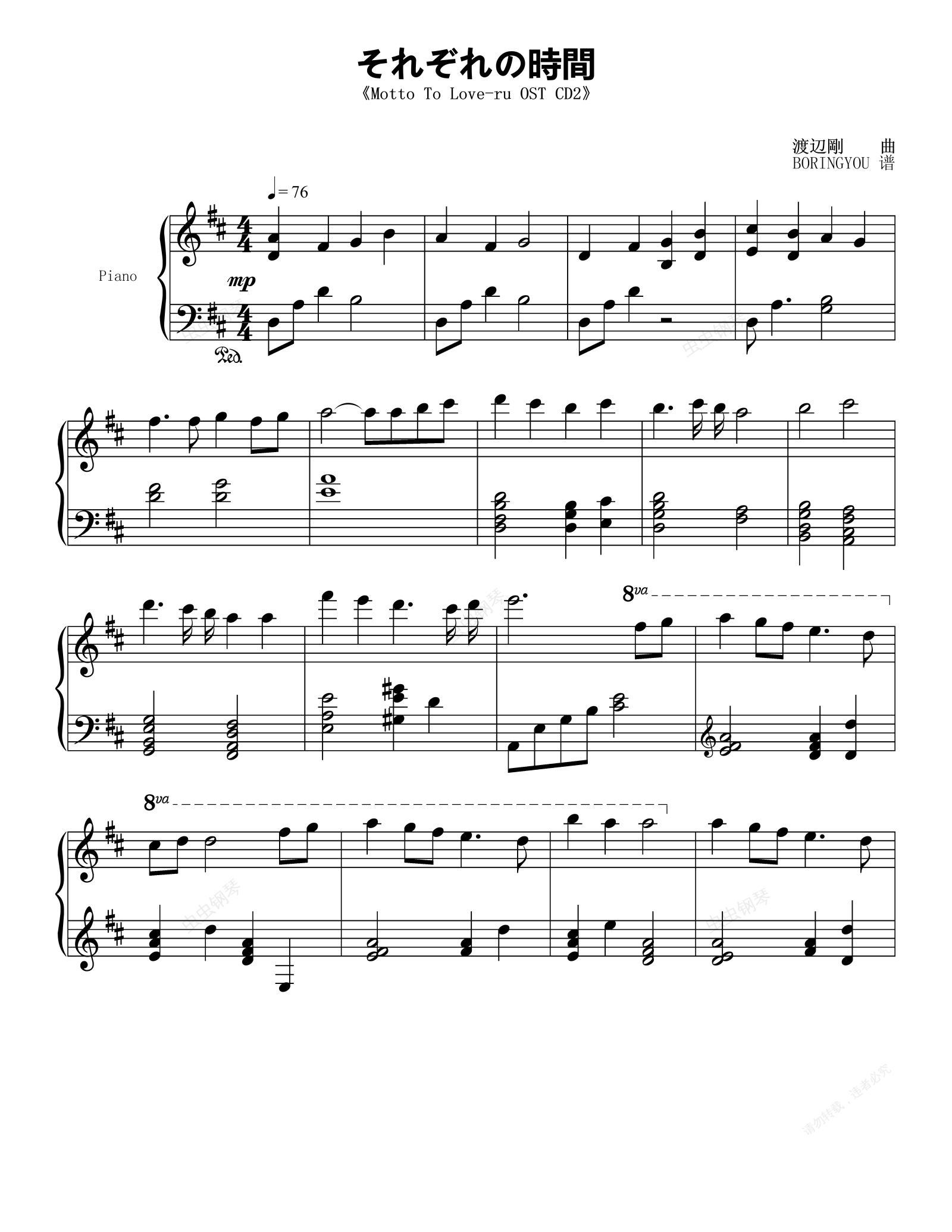 钢琴谱:それぞれの時間 (To Love-ru 出包王女 OST)