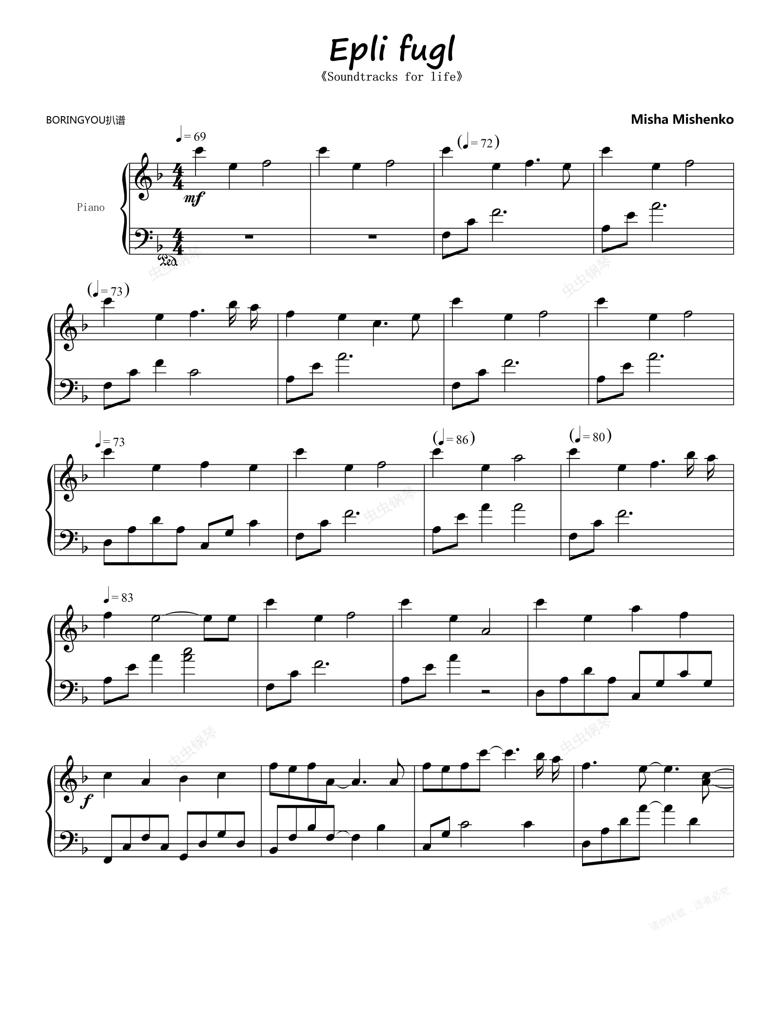 钢琴谱:Misha Mishenko - 《Epli fugl》
