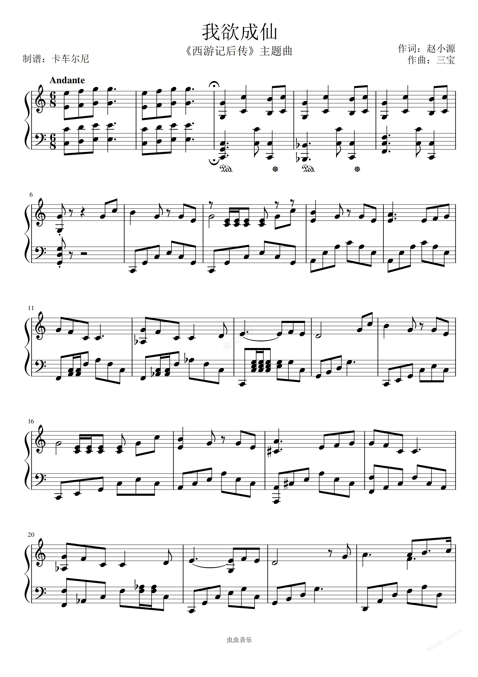 钢琴谱:刘欢演唱《我欲成仙》 西游记后传主题曲 ,C大调动感版