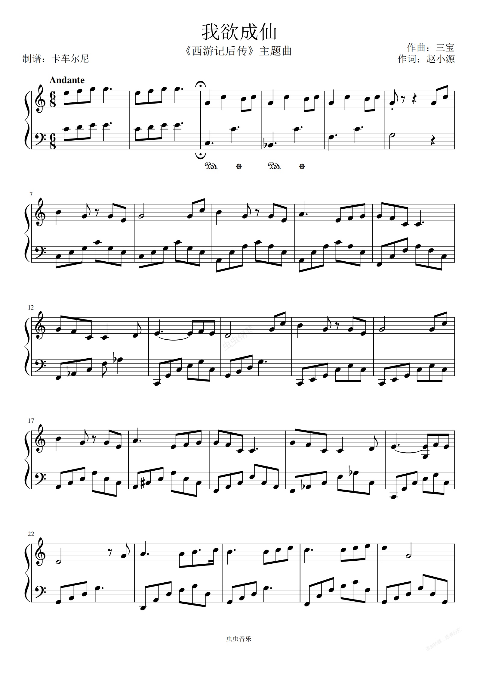 钢琴谱:西游记后传片头曲《我欲成仙》单音简易版