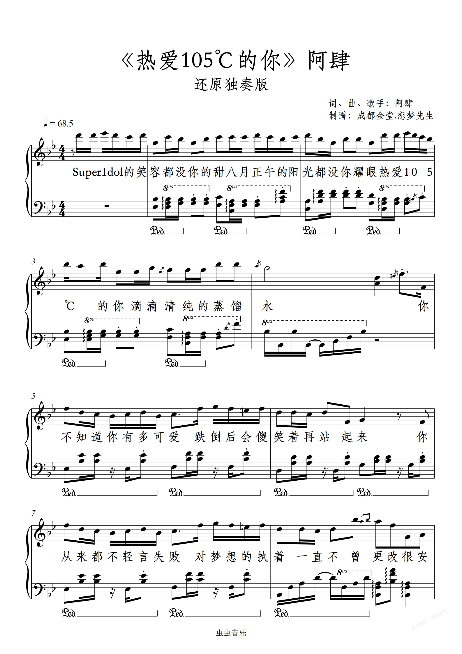 钢琴谱:《热爱105°C的你》阿肆-还原独奏版