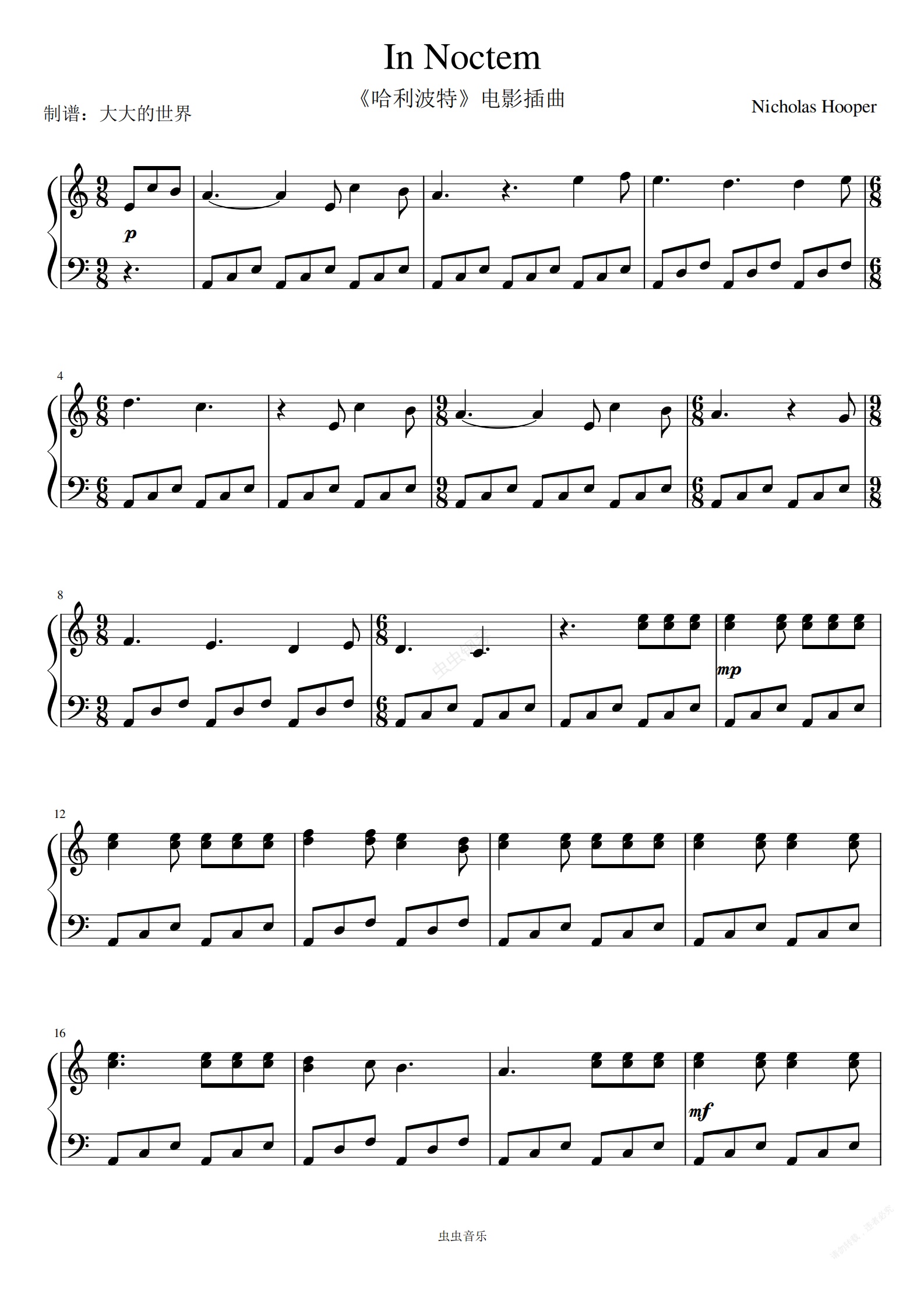 钢琴谱:In Noctem-《哈利波特》电影插曲