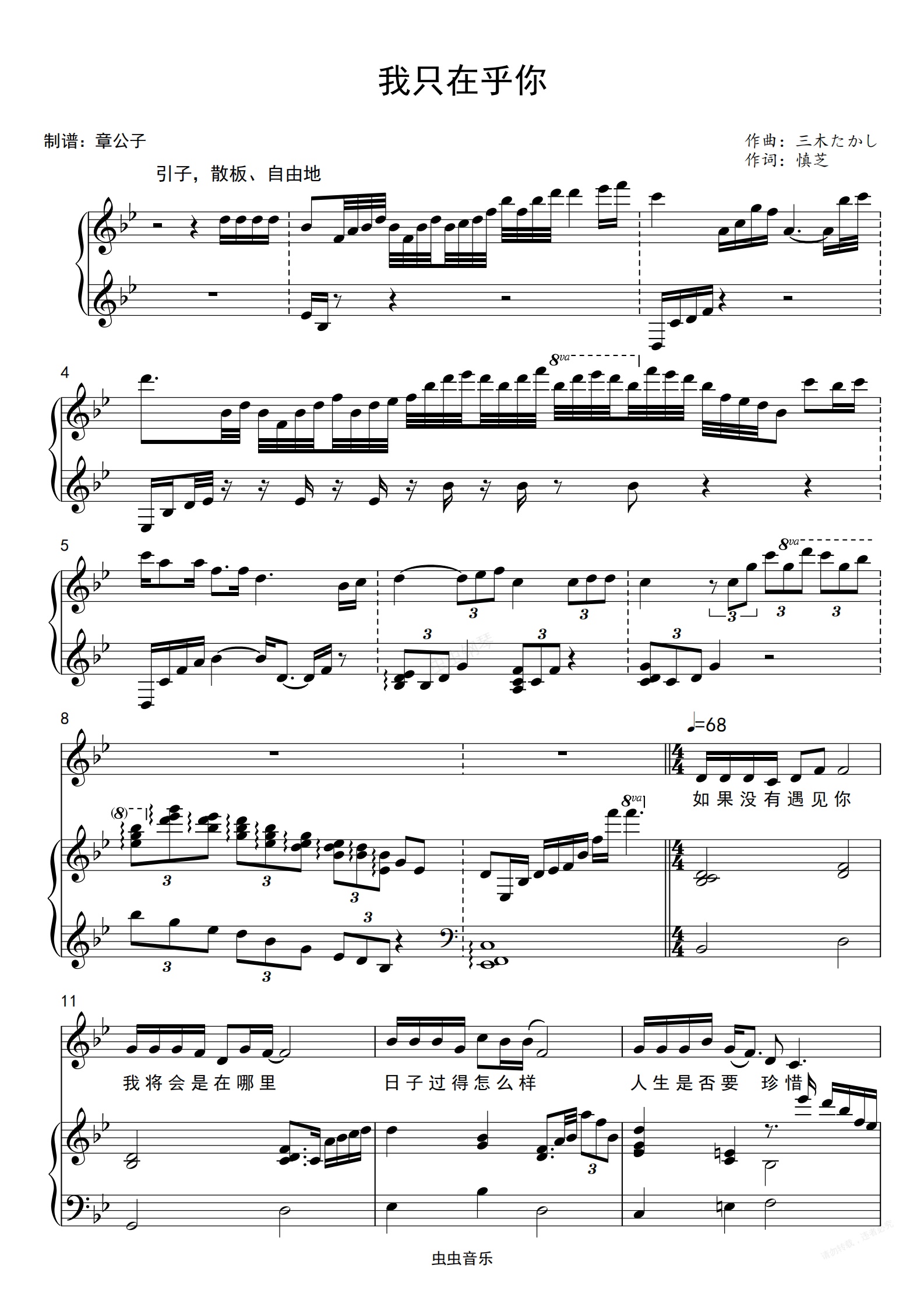 钢琴谱:我只在乎你 - 林宥嘉(live)完美弹唱谱bB调