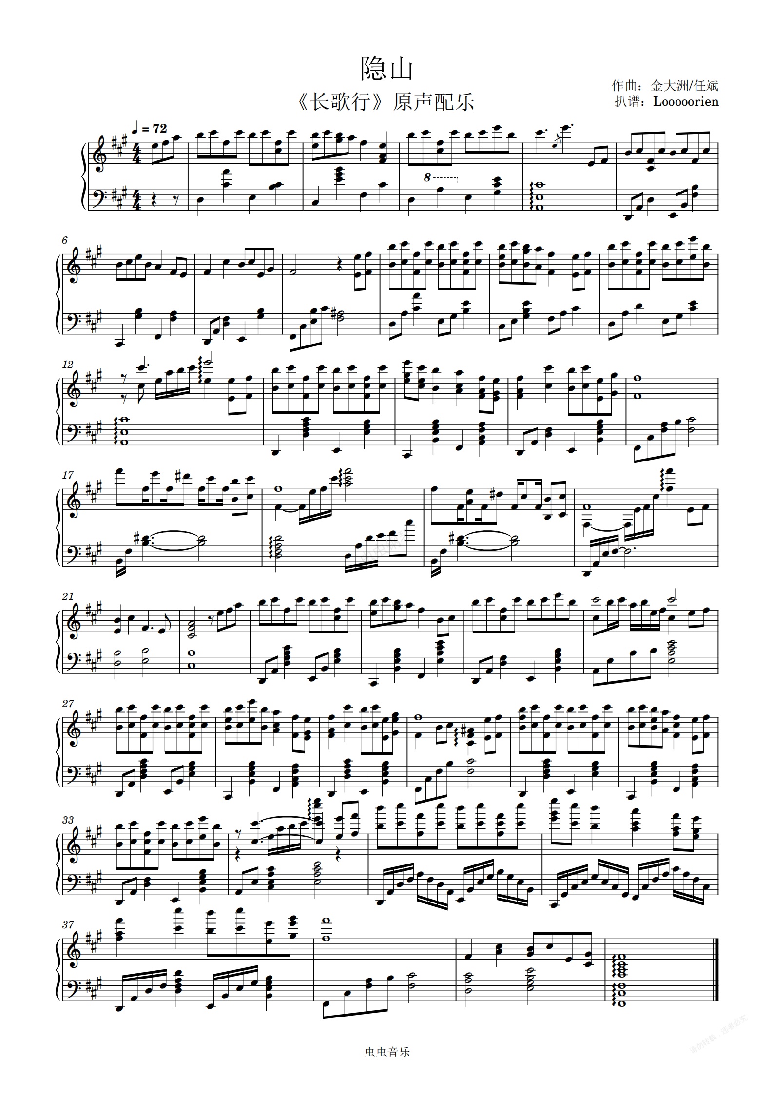 钢琴谱:《隐山》-长歌行原声配乐