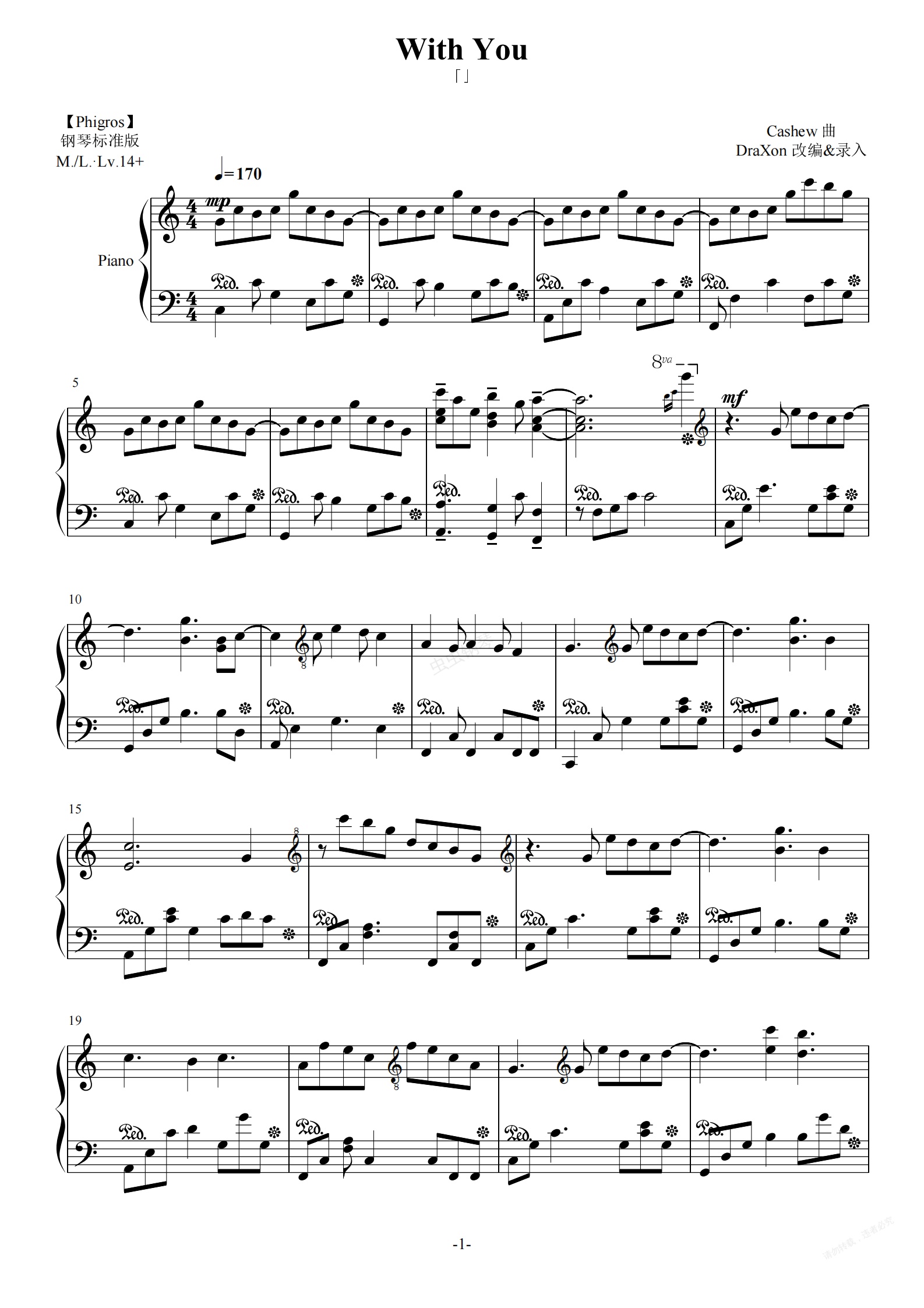 钢琴谱:With You(by Cashew in Phigros)