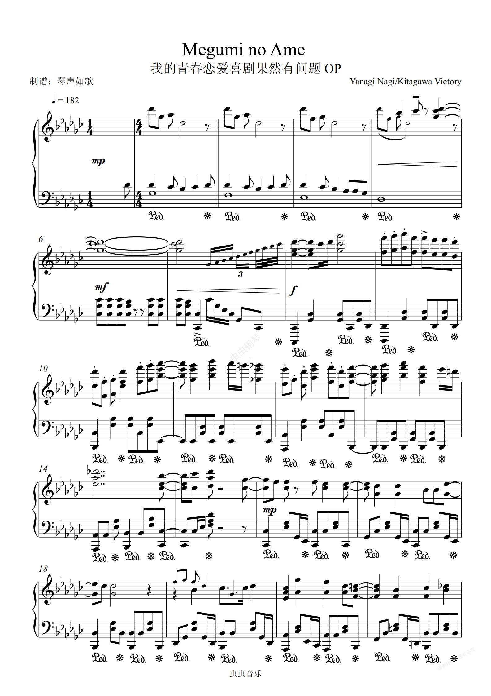 钢琴谱:Megumi no Ame -我的青春恋爱喜剧果然有问题 OP