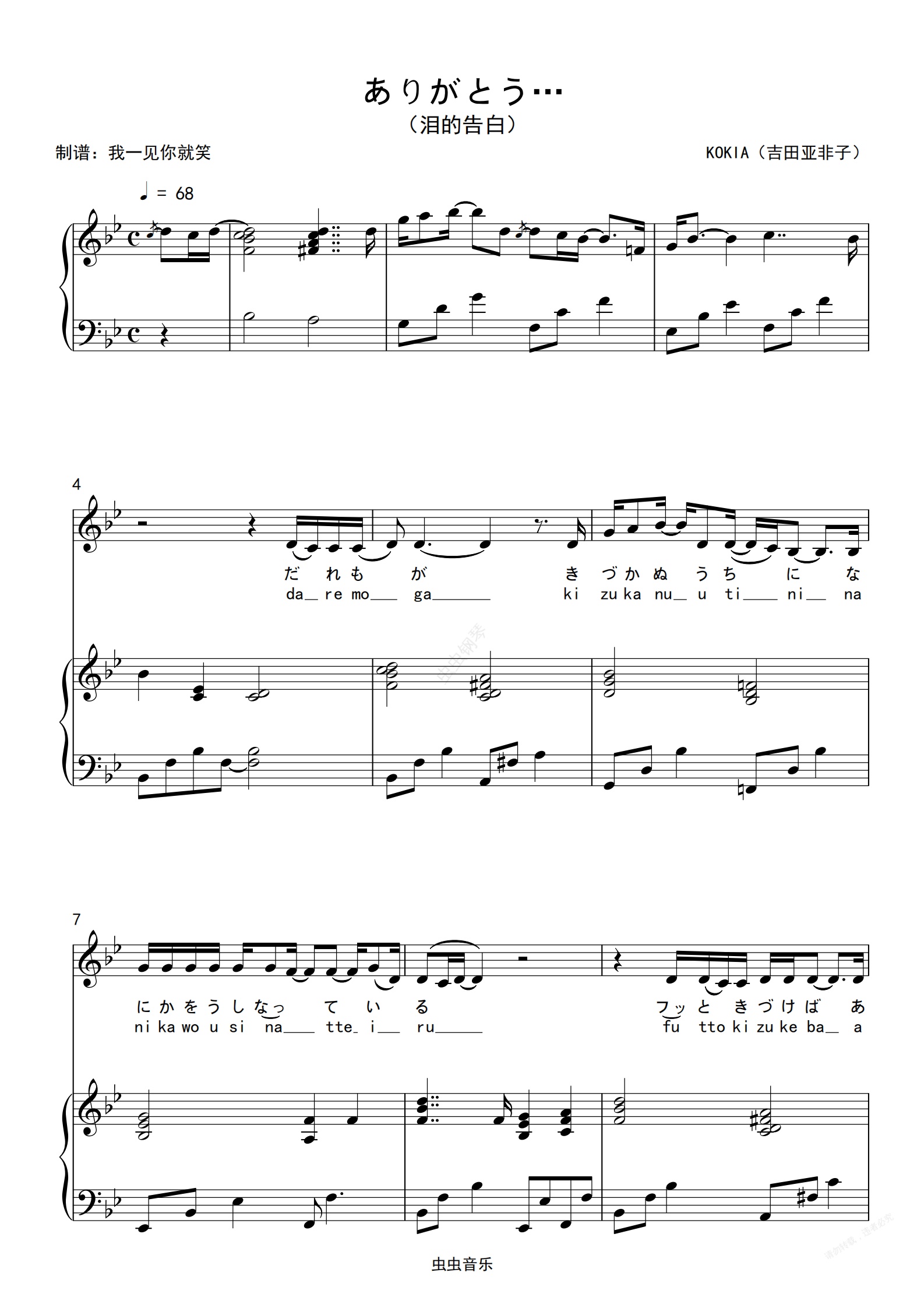 钢琴谱:ありがとう…(泪的告白)