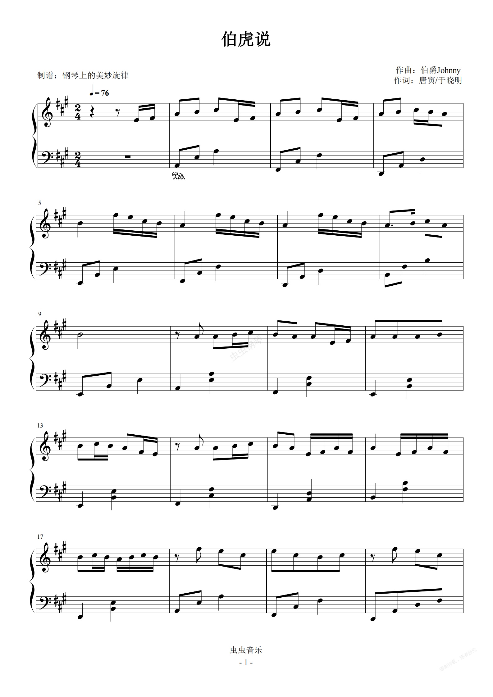 钢琴谱:伯虎说 简易版