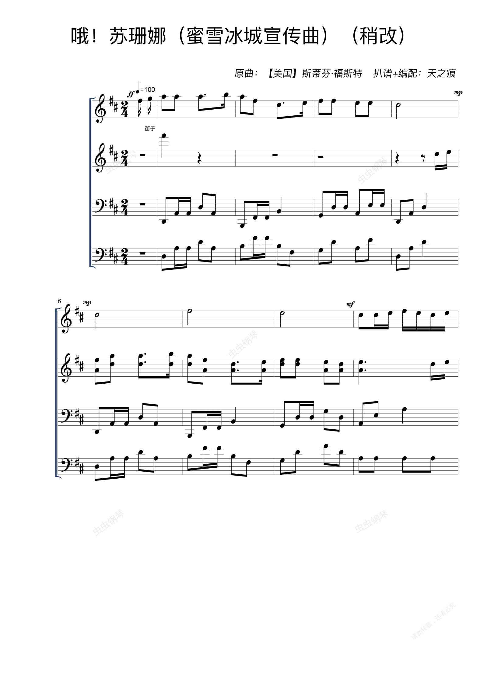 钢琴谱:蜜雪冰城(钢琴+笛子+太鼓)(原曲:哦苏珊娜)