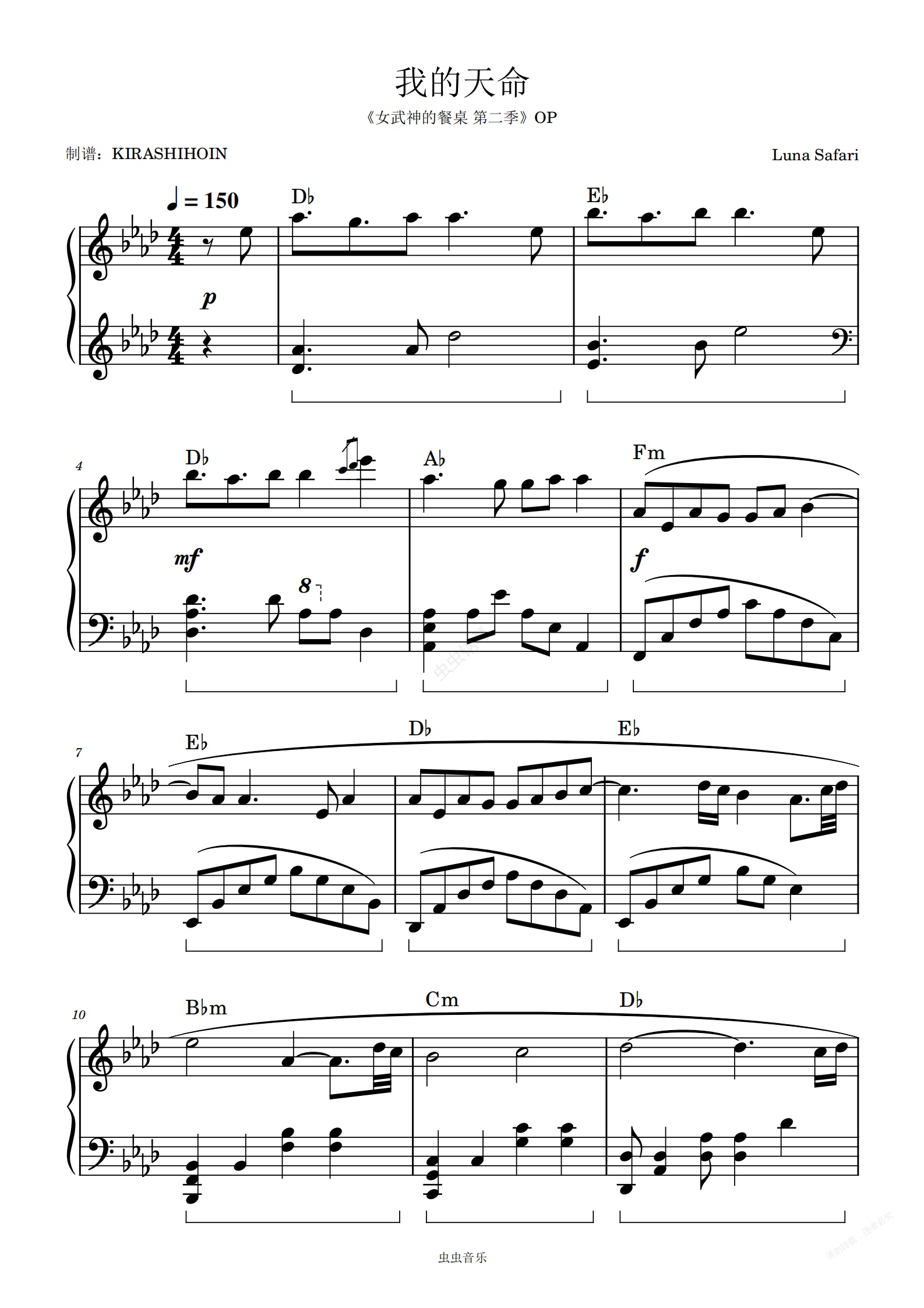 钢琴谱:我的天命(《女武神的餐桌 第二季》OP/崩坏3衍生动画片头曲)