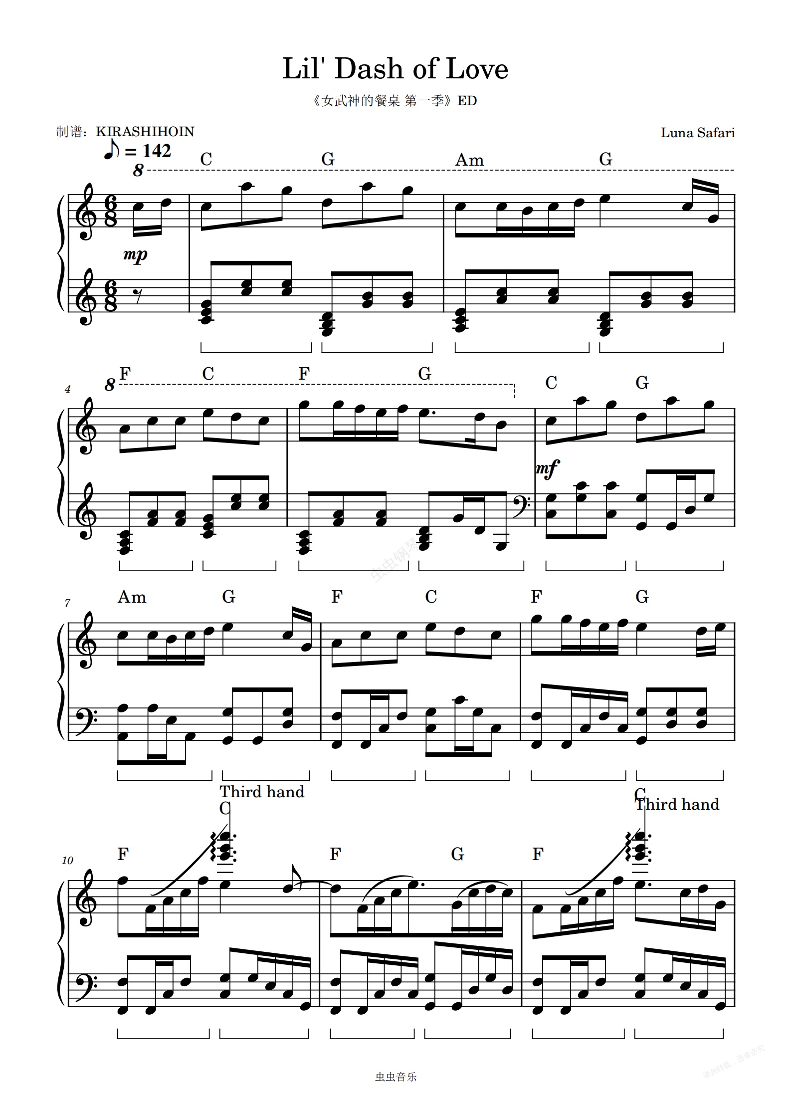 钢琴谱:Lil' Dash of Love(《女武神的餐桌 第一季》ED/崩坏3衍生动画片尾曲)