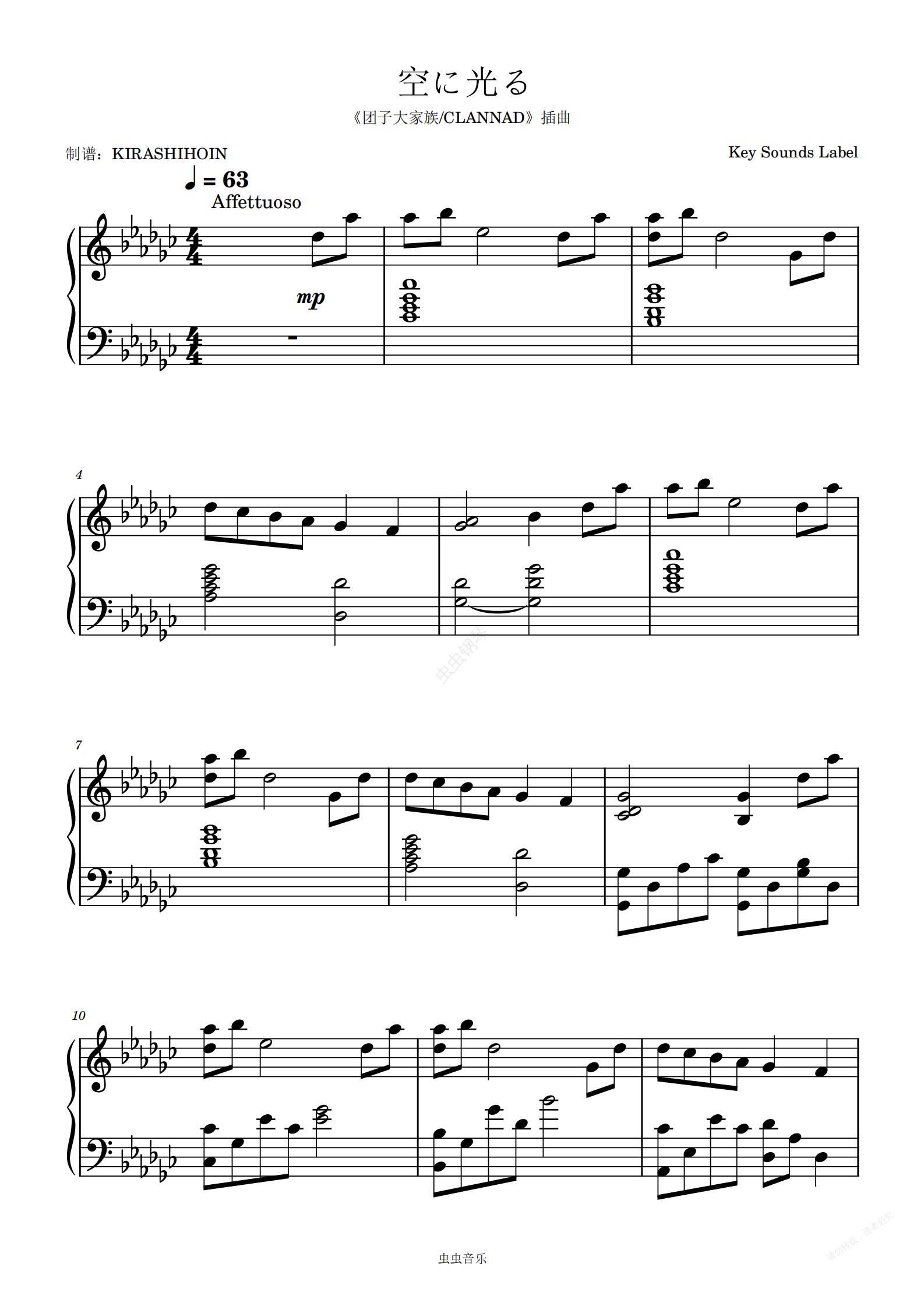 钢琴谱:空に光る/天空中闪烁着光(《团子大家族/CLANNAD》插曲)