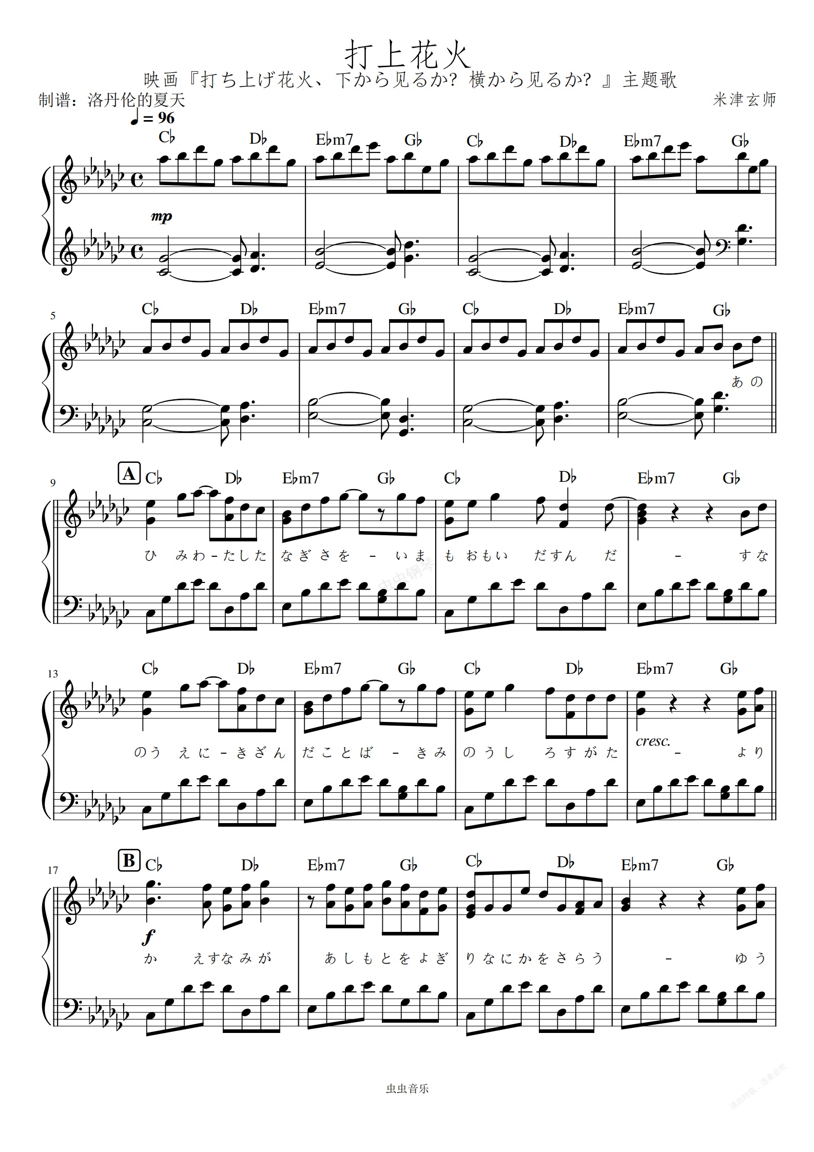 钢琴谱:打上花火《升起的烟花,从下面看?还是从侧面看?》主题曲