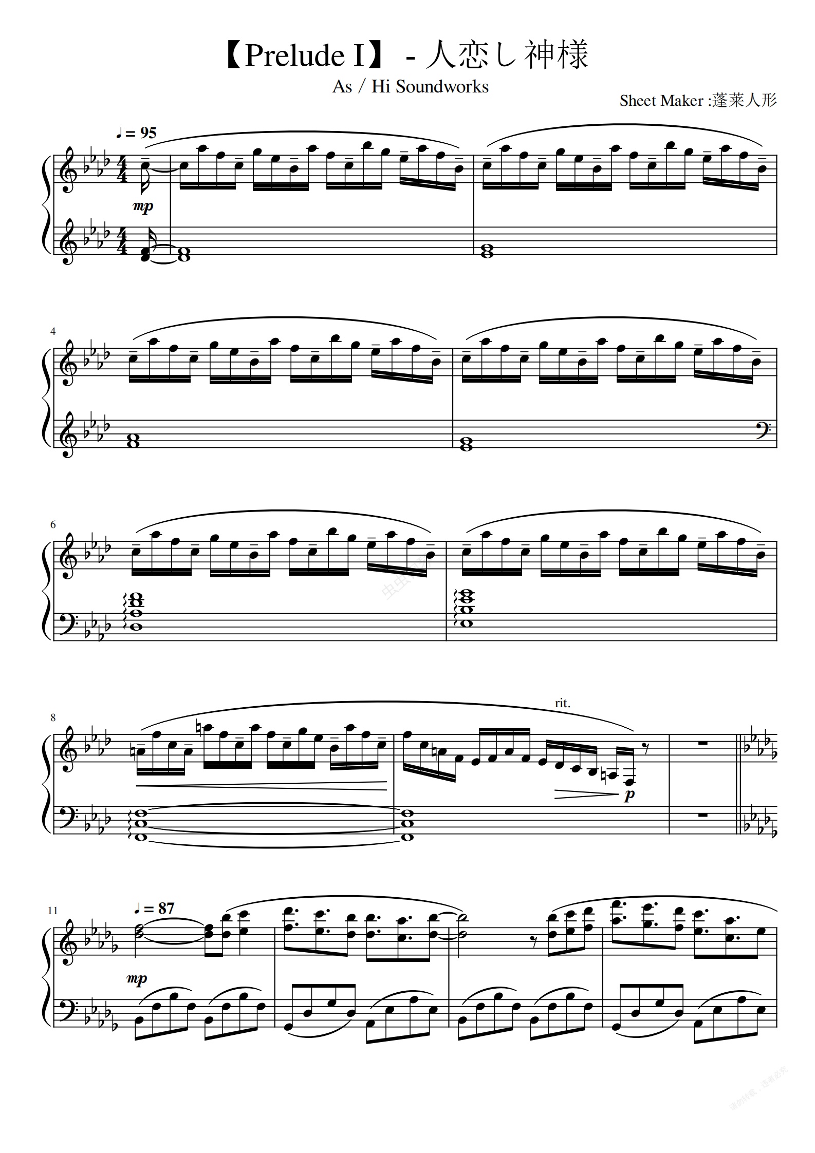 钢琴谱:【东方风神录】人恋し神様-As/Hi Soundworks