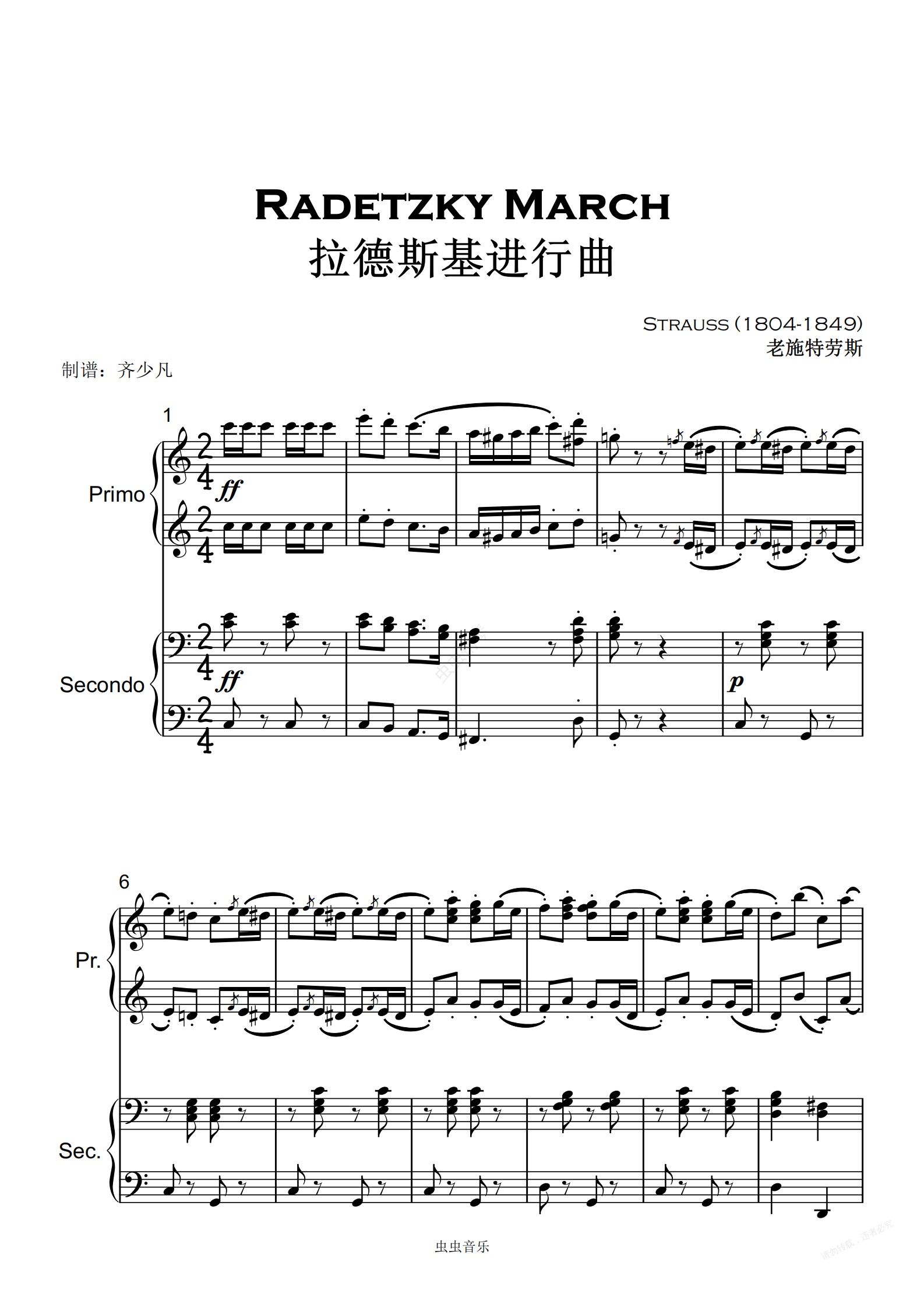 钢琴谱:【四手联弹】拉德斯基进行曲(Radetzky March)