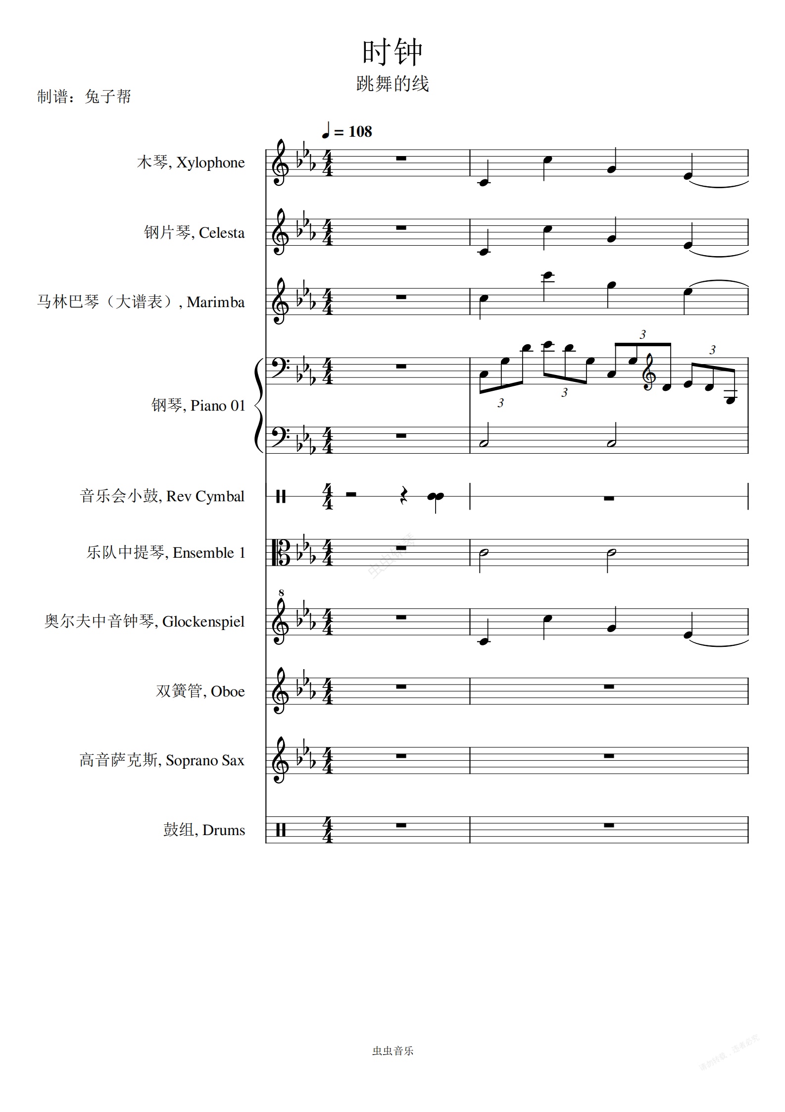 钢琴谱:【高度还原】跳舞的线-时钟
