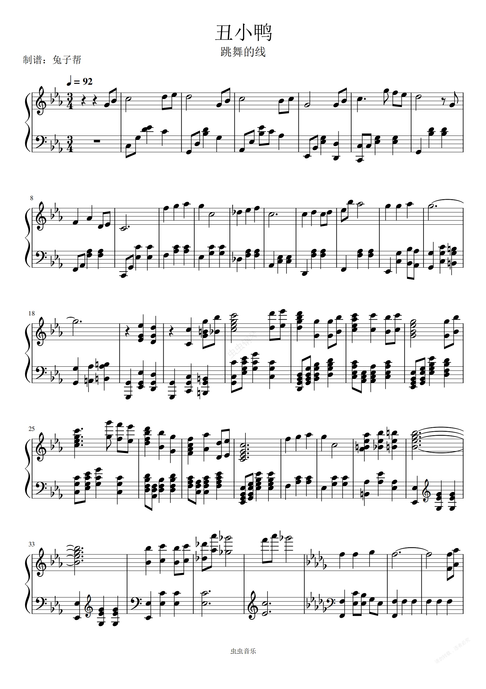 钢琴谱:丑小鸭-跳舞的线