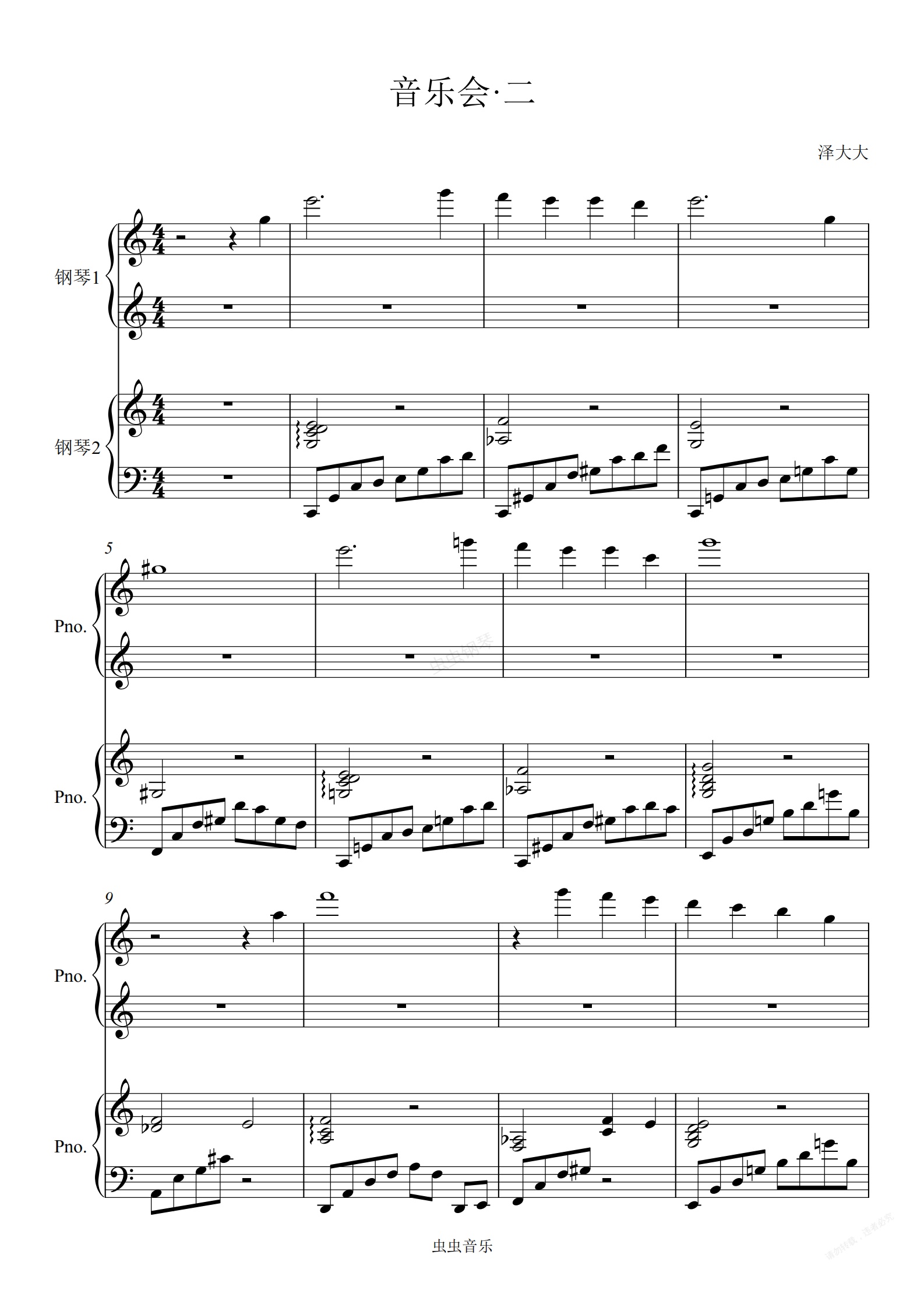 钢琴谱:音乐会·二【四手联弹】泽大大曲