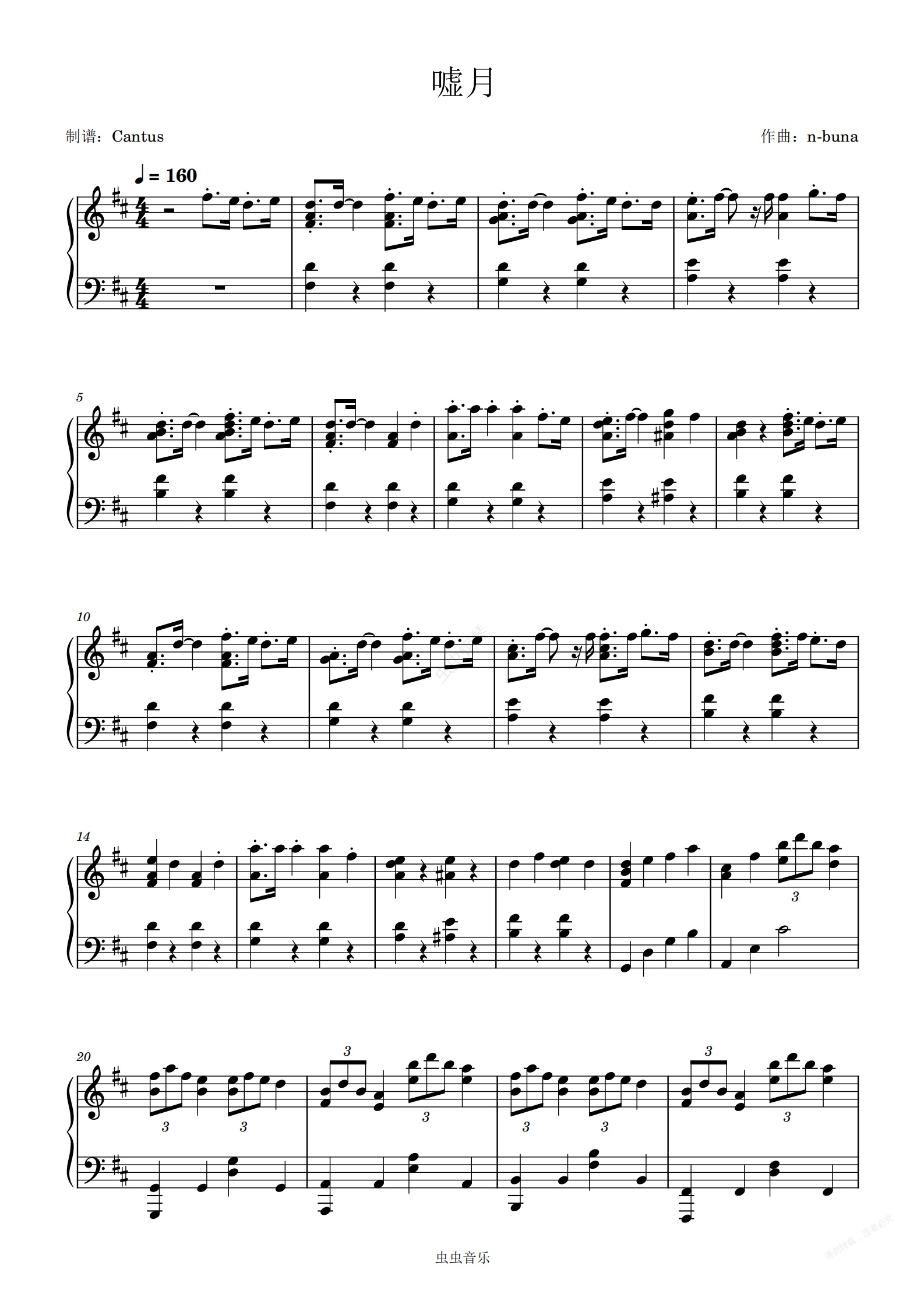 钢琴谱:嘘月-想哭的我戴上了猫的面具