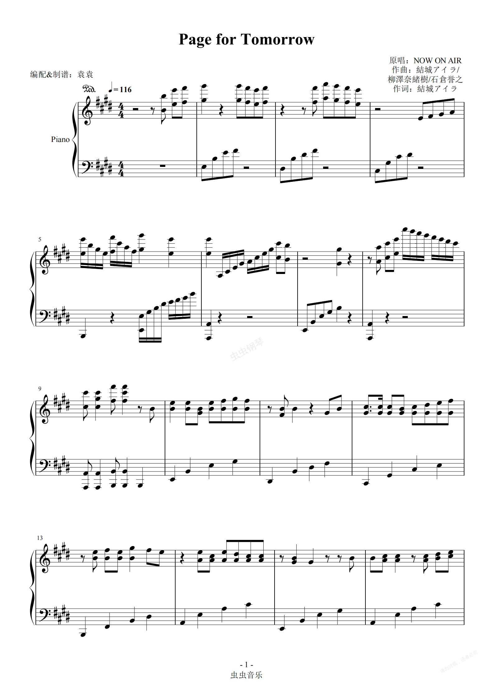 钢琴谱:圣女魔力无所不能ED Page for Tomorrow