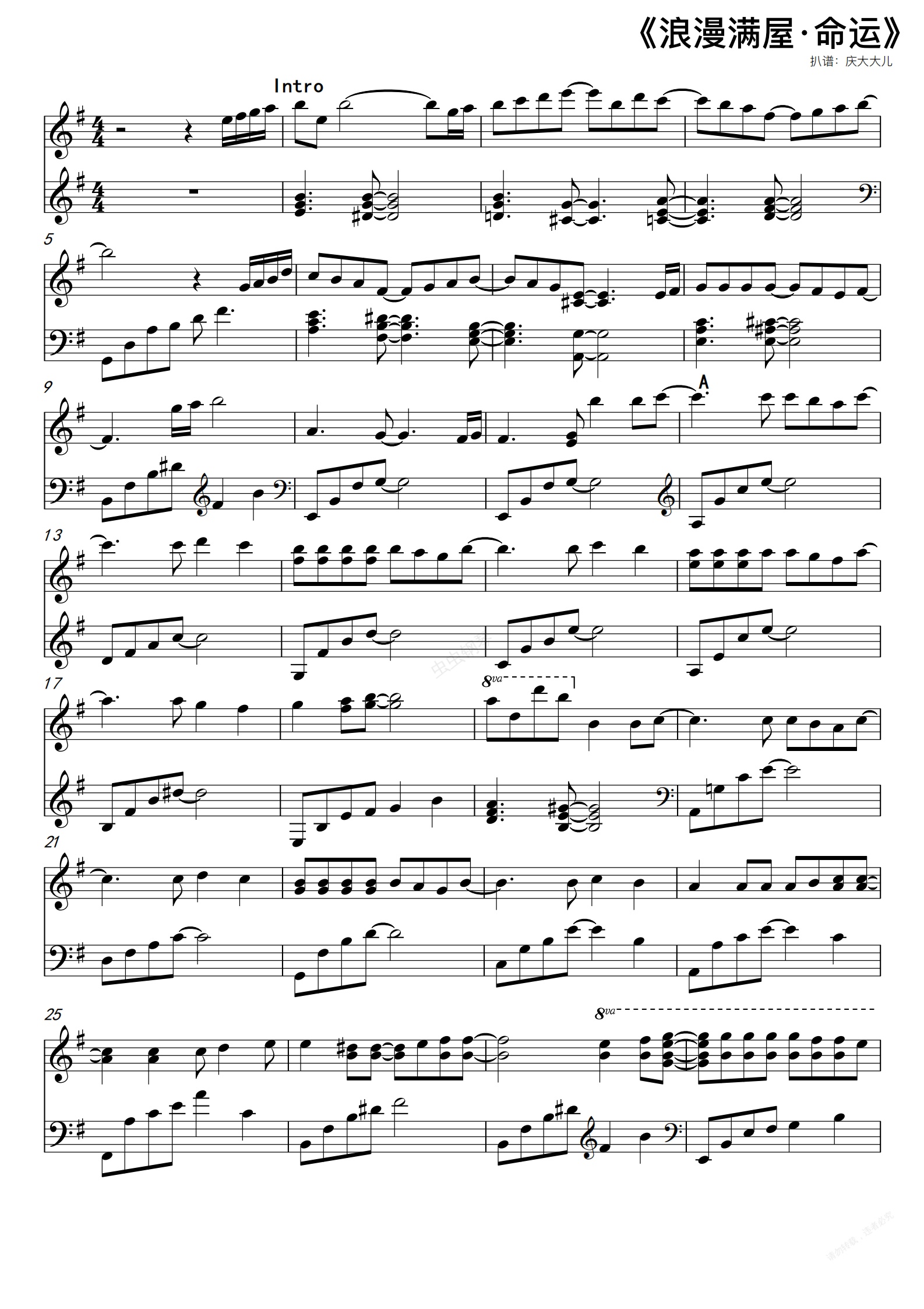 钢琴谱:【浪漫满屋·命运】 C调 简易钢琴谱 全网唯一