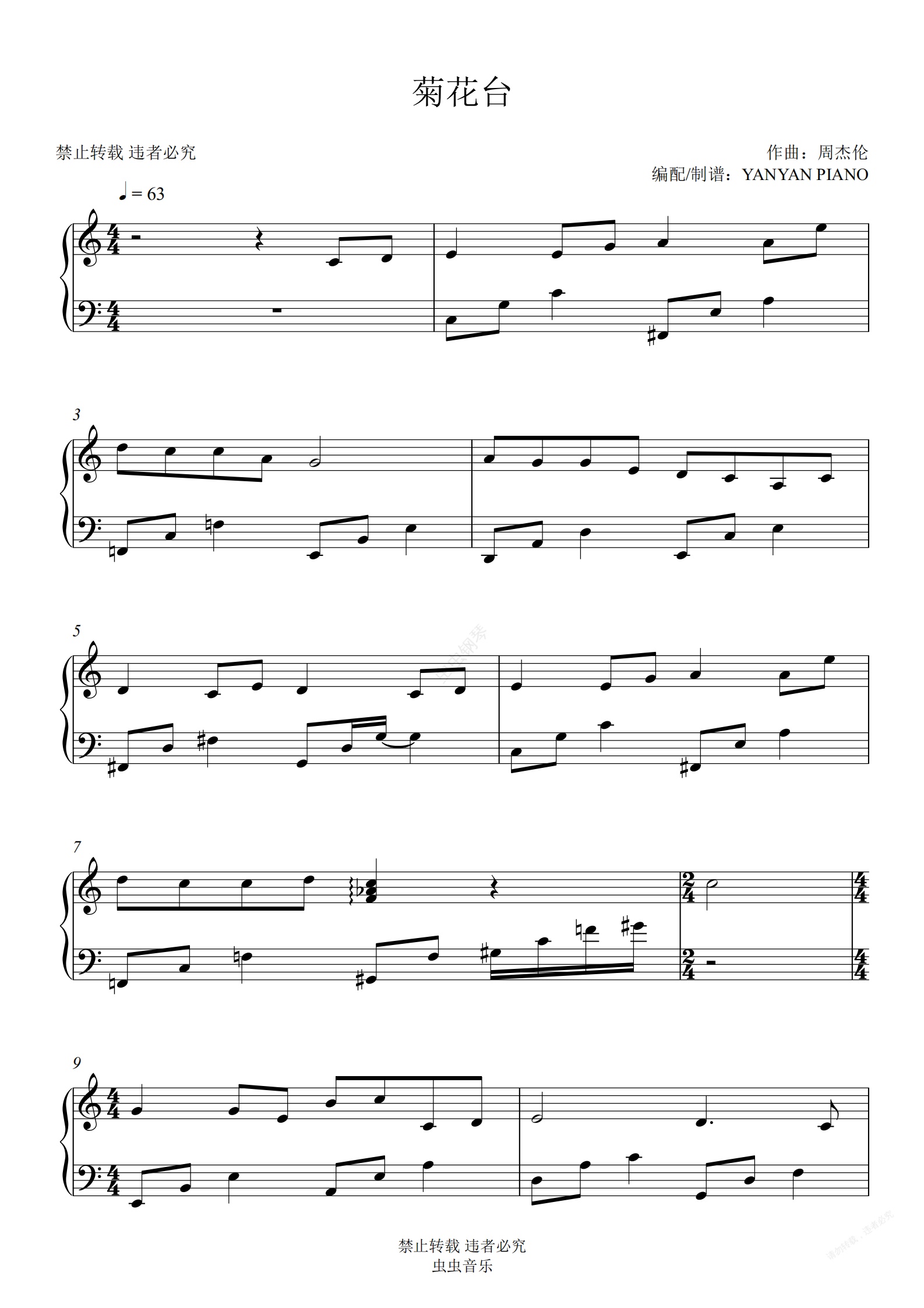 钢琴谱:满城尽带黄金甲【菊花台】周杰伦