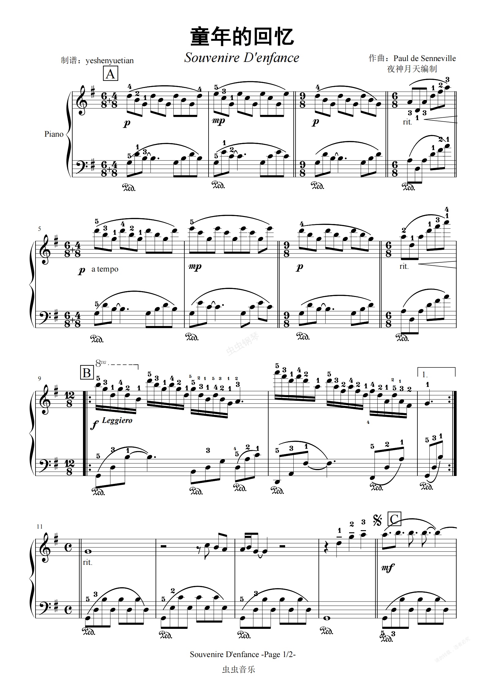 钢琴谱:爱的纪念(又名童年的回忆)理查德克莱德曼音乐live版