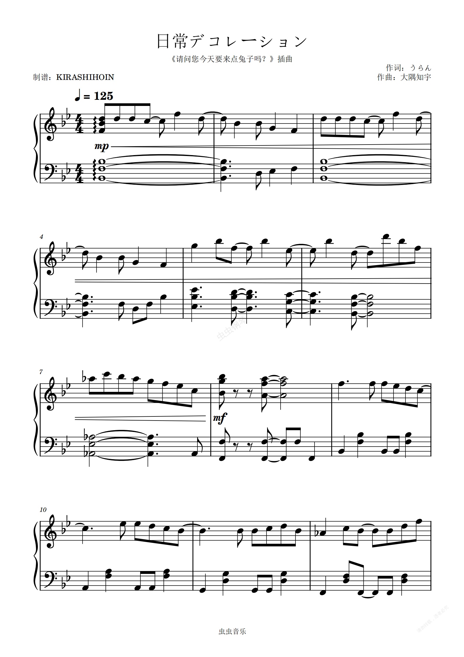 钢琴谱:日常デコレーション(《请问您今天要来点兔子吗?》插曲)