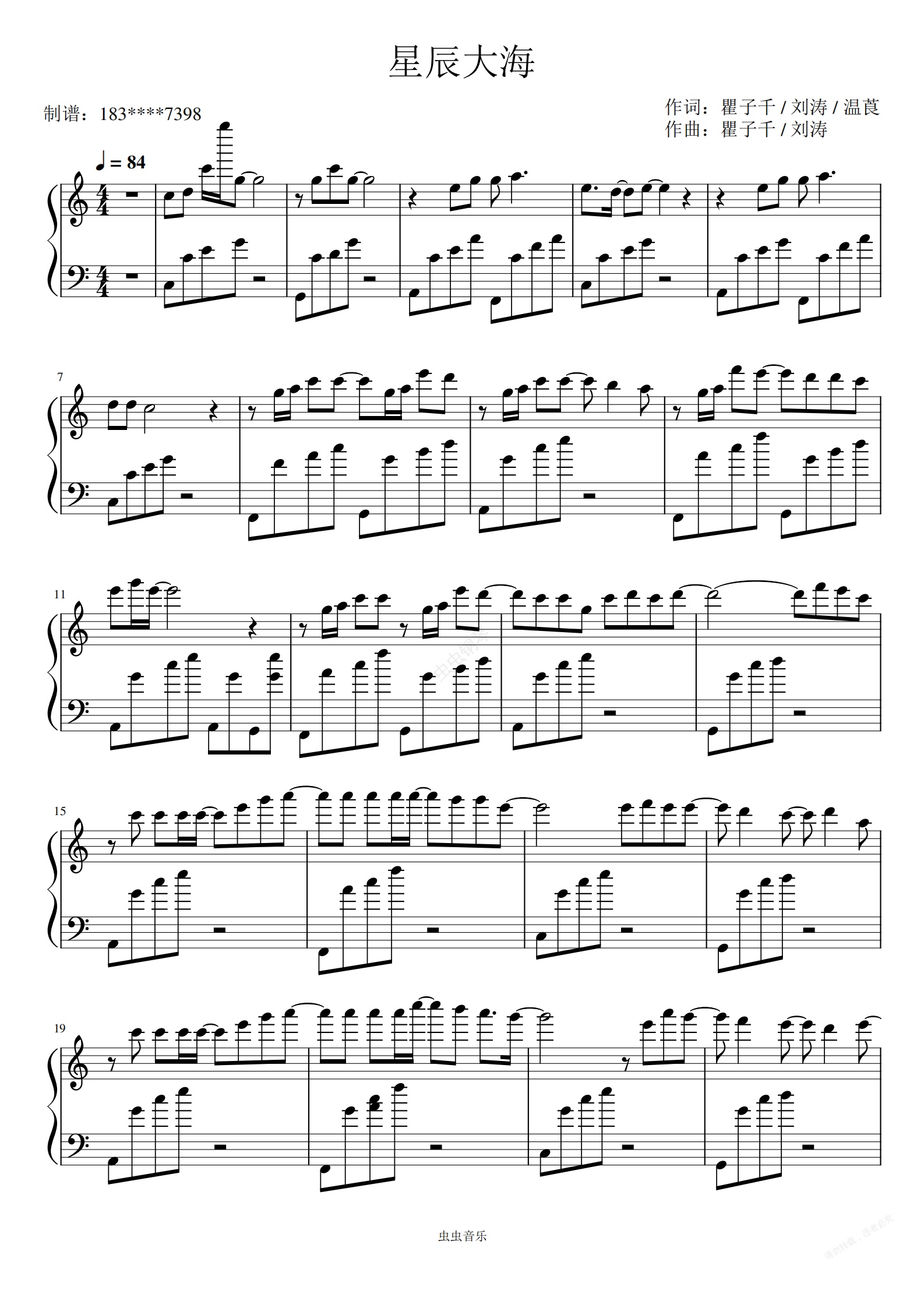 钢琴谱:性价比超高-《星辰大海》-C调--啊信改编