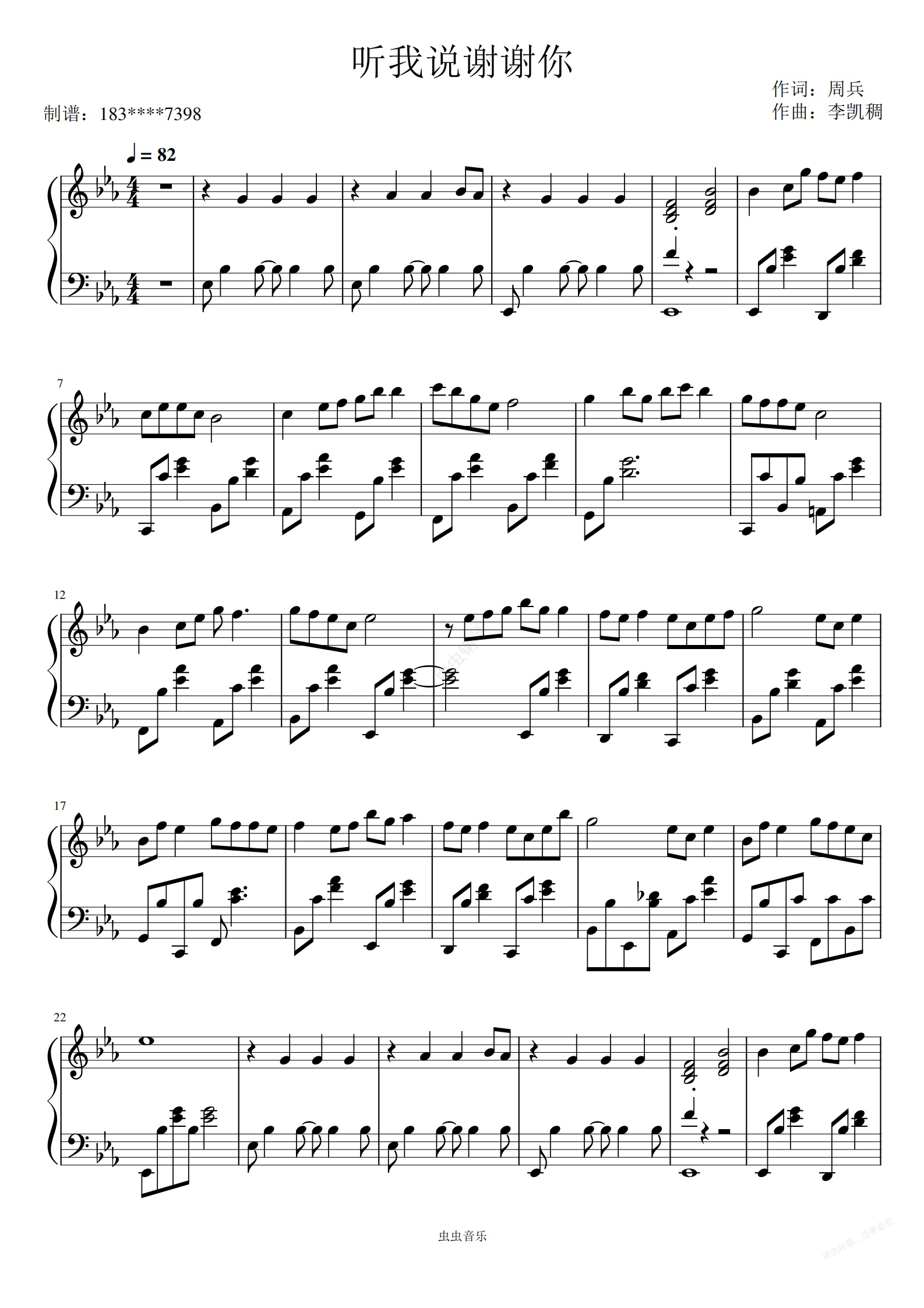 钢琴谱:极限原版-《听我说谢谢你》-Eb调--啊信改编