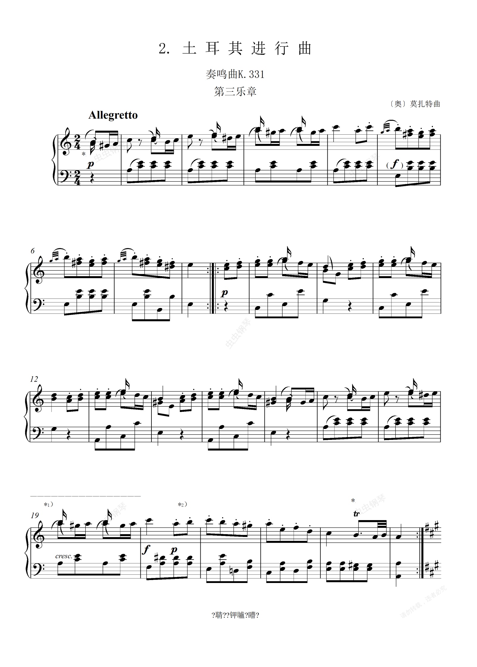 钢琴谱:第八级 土耳其进行曲奏鸣曲 K.331 第三乐章
