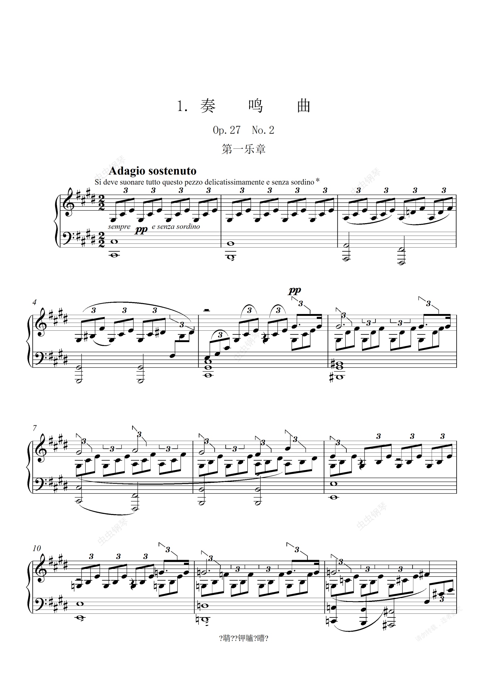 钢琴谱:第九级 奏鸣曲Op.27 No.2 第一乐章