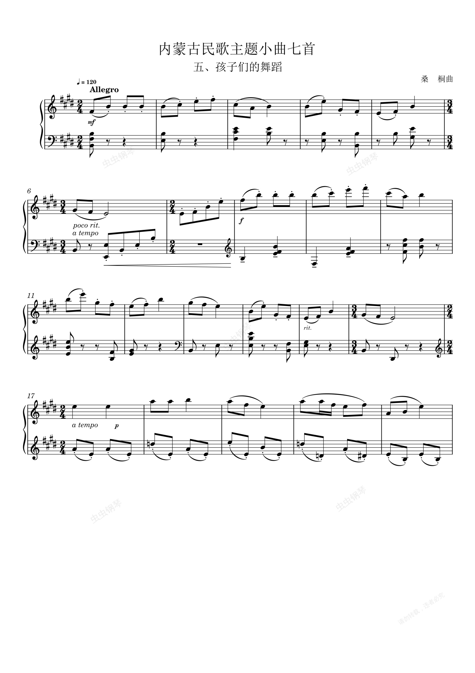 钢琴谱:内蒙古民歌主题小曲七首 五、孩子们的舞蹈