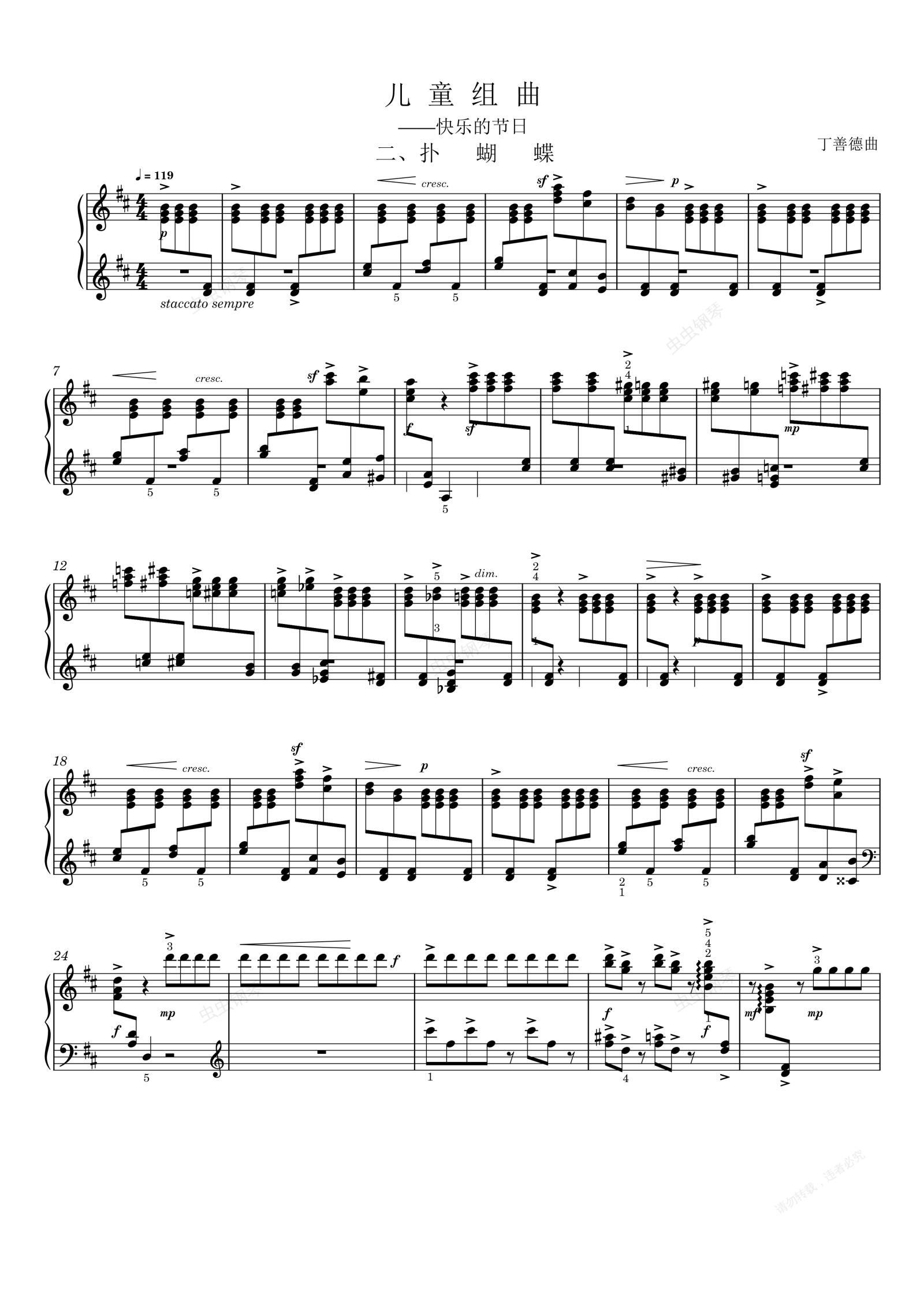 钢琴谱:儿童组曲 二、扑蝴蝶