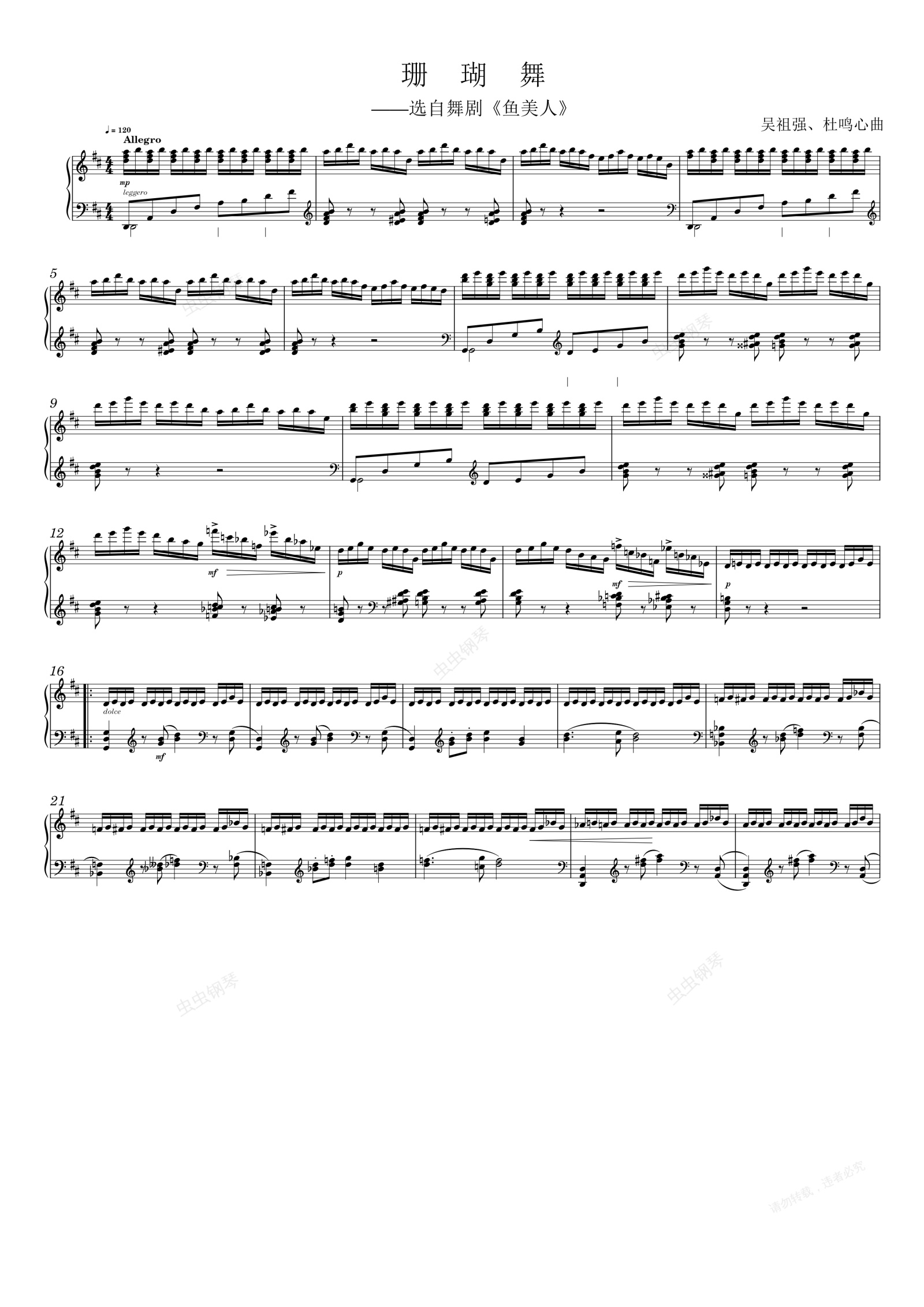 钢琴谱:珊瑚舞——选自舞剧《鱼美人》