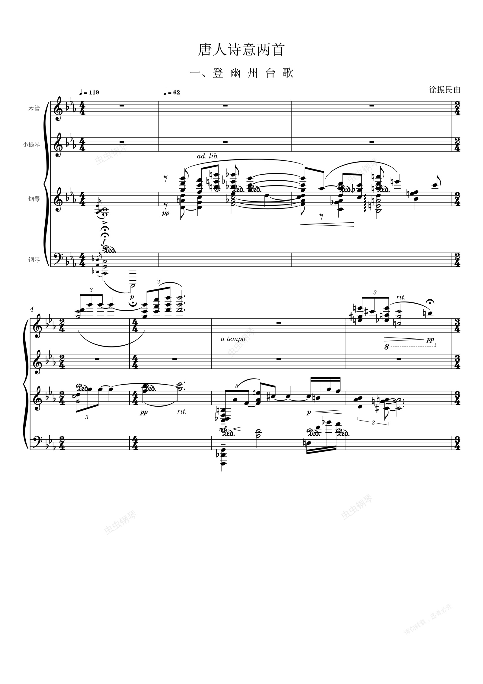 钢琴谱:唐人诗意两首 一、登幽州台歌