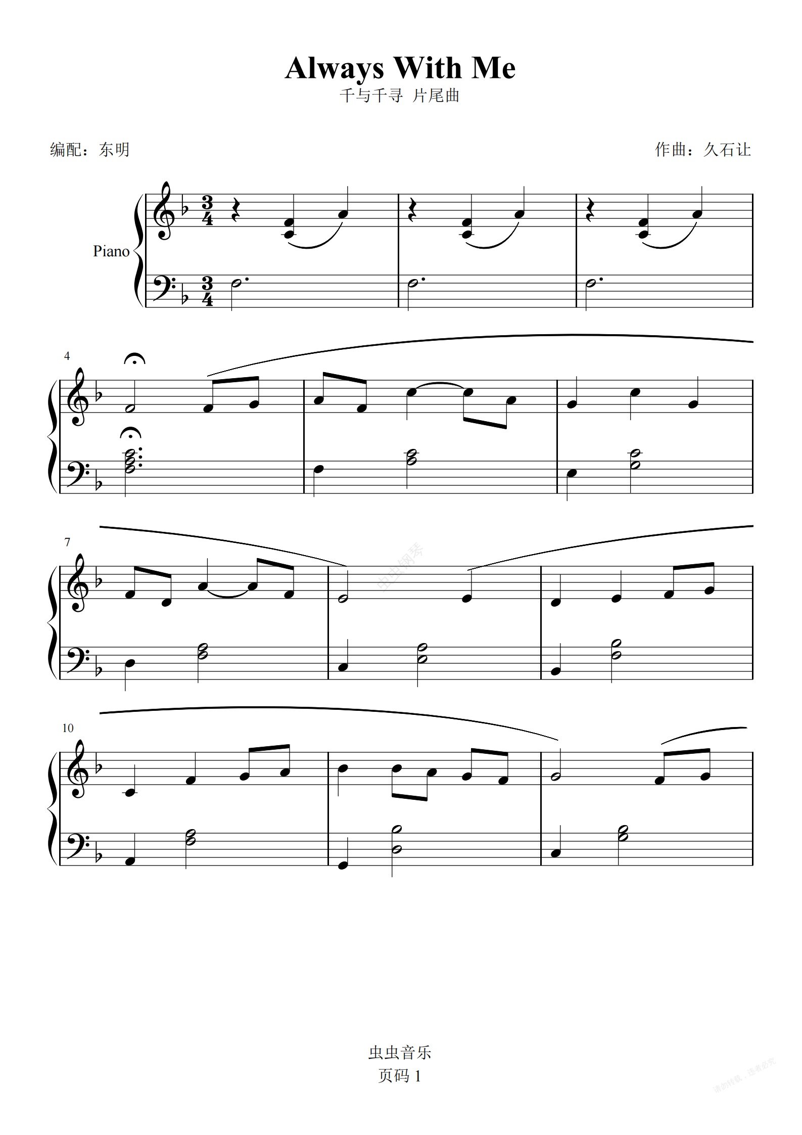 钢琴谱:好听易上手-Always With Me 千与千寻 通用版