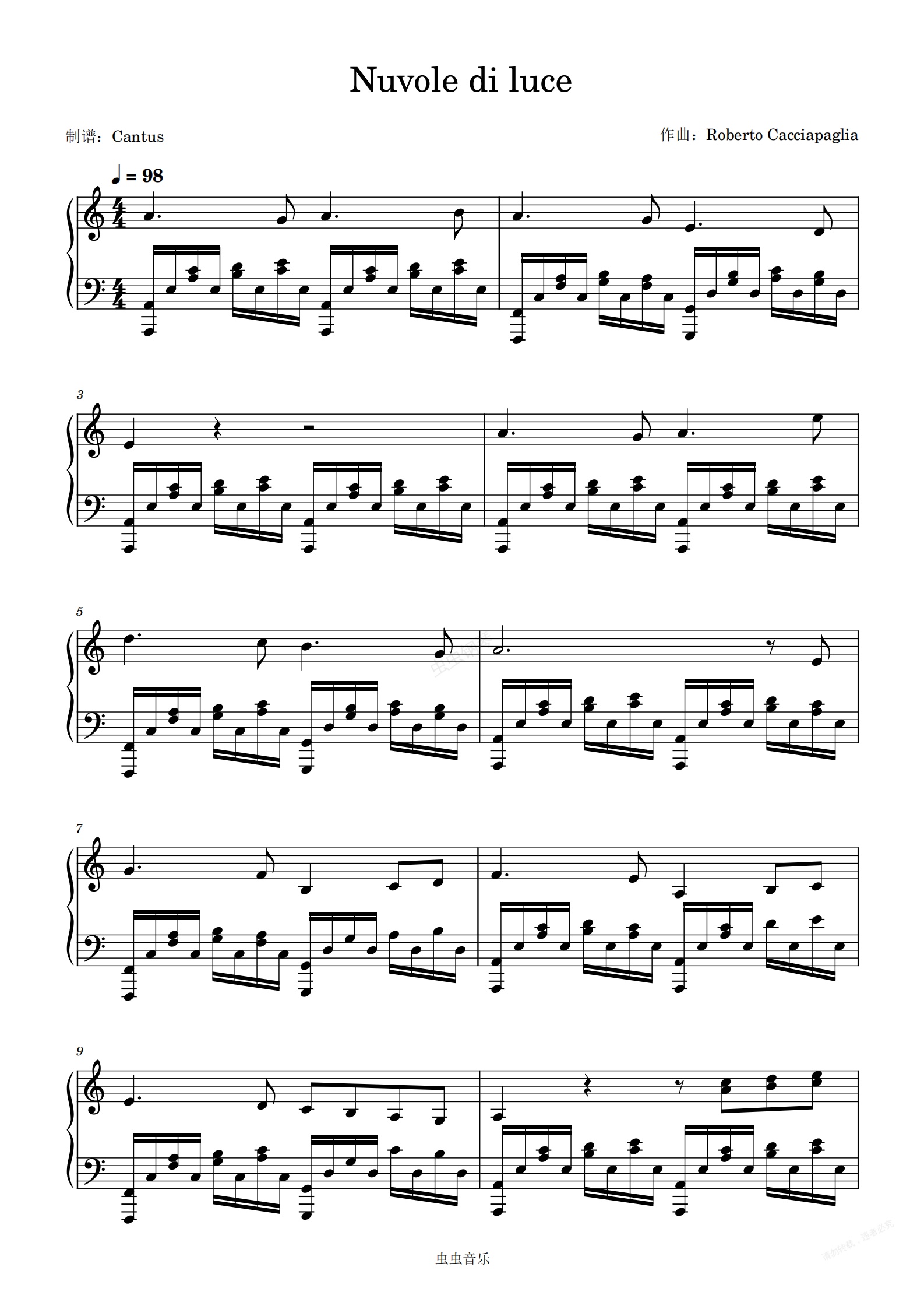 钢琴谱:Nuvole di luce/鲜艳的云-Roberto Cacciapaglia