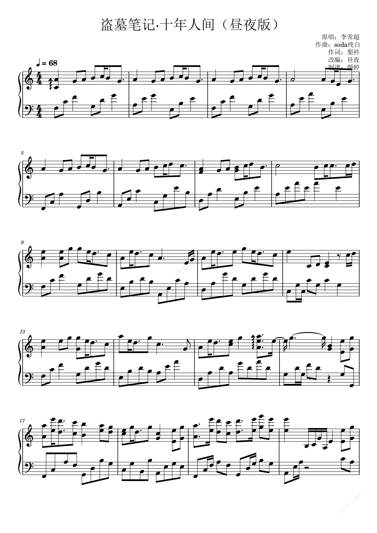 钢琴谱:《盗墓笔记 十年人间》(昼夜版)