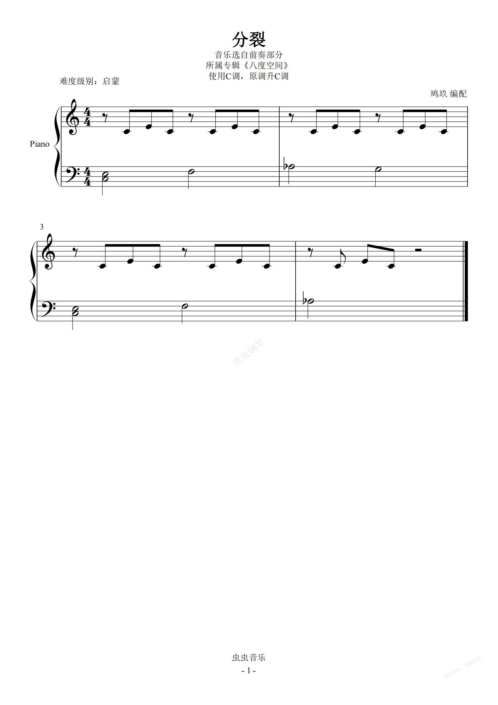钢琴谱:0-2 分裂【八分音符与二分音符】