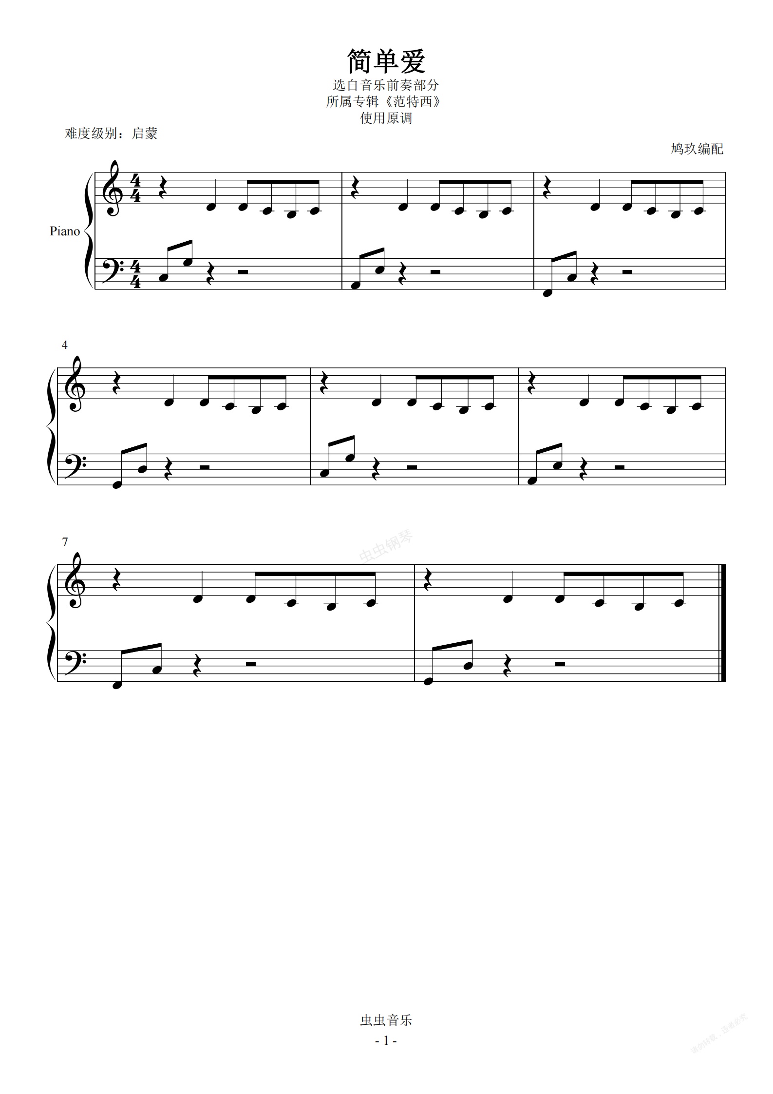 钢琴谱:0-11 简单爱【组合节奏】