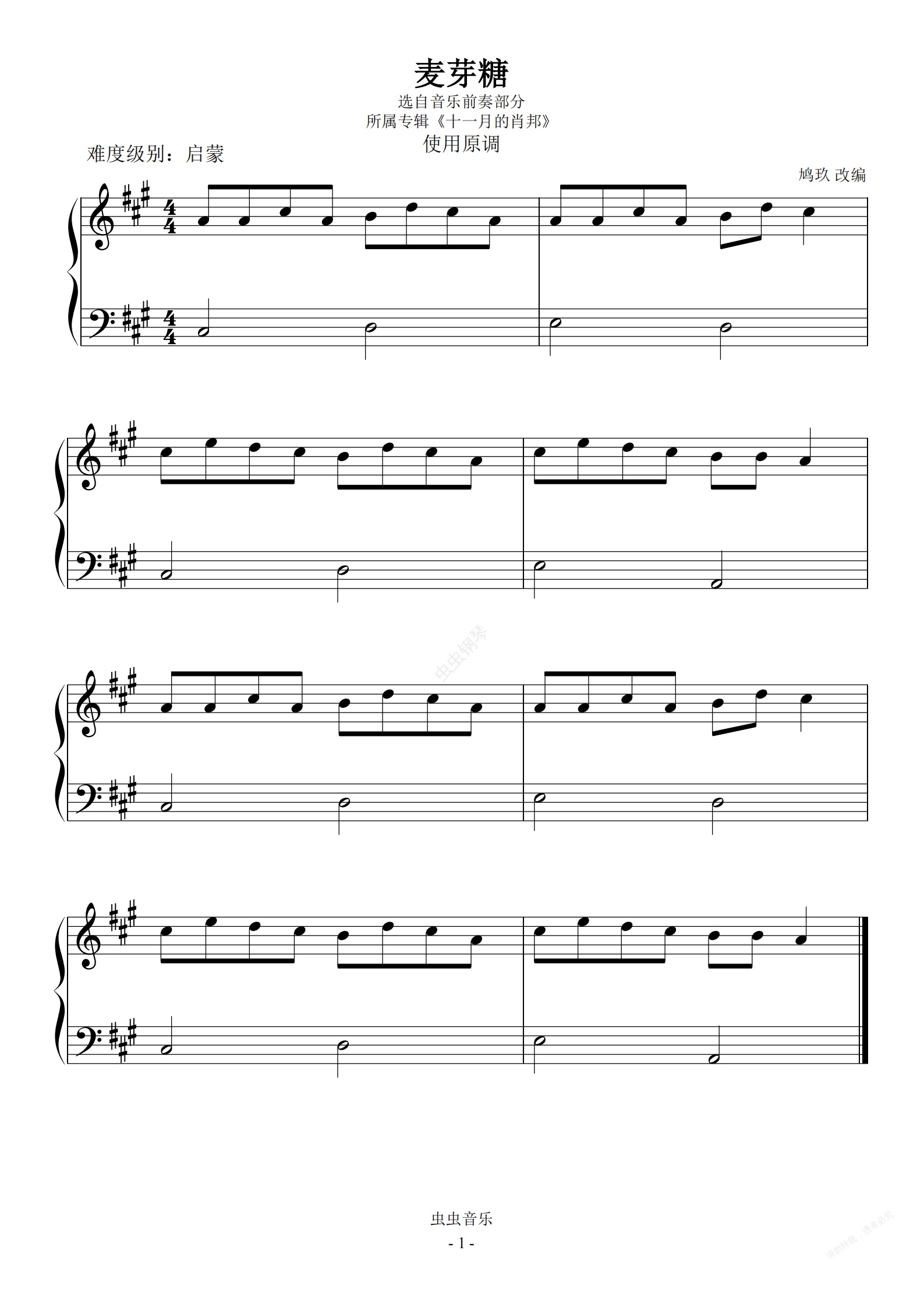 钢琴谱:0-12 麦芽糖【三个升号的调号】