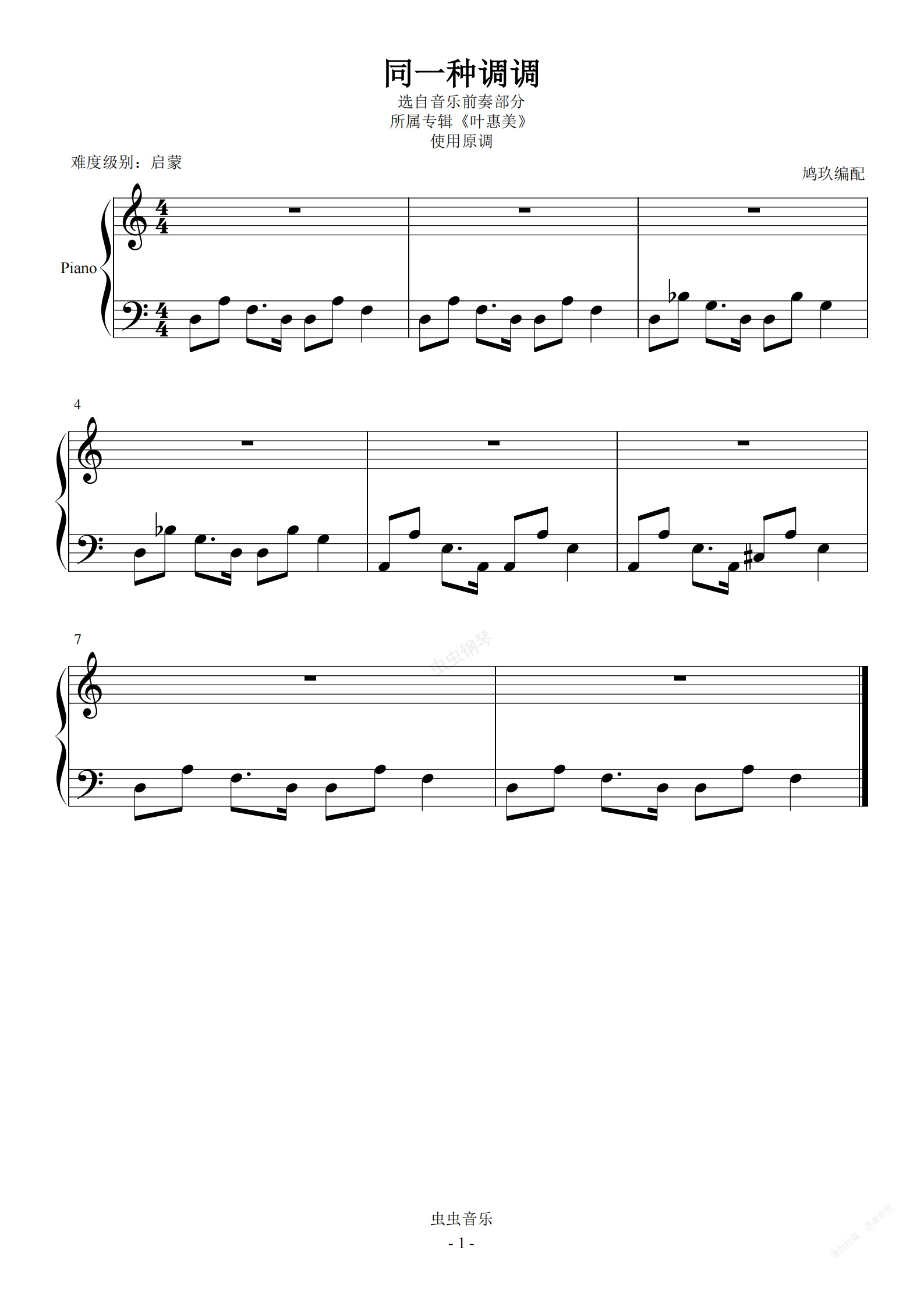 钢琴谱:0-21 同一种调调【组合节奏】