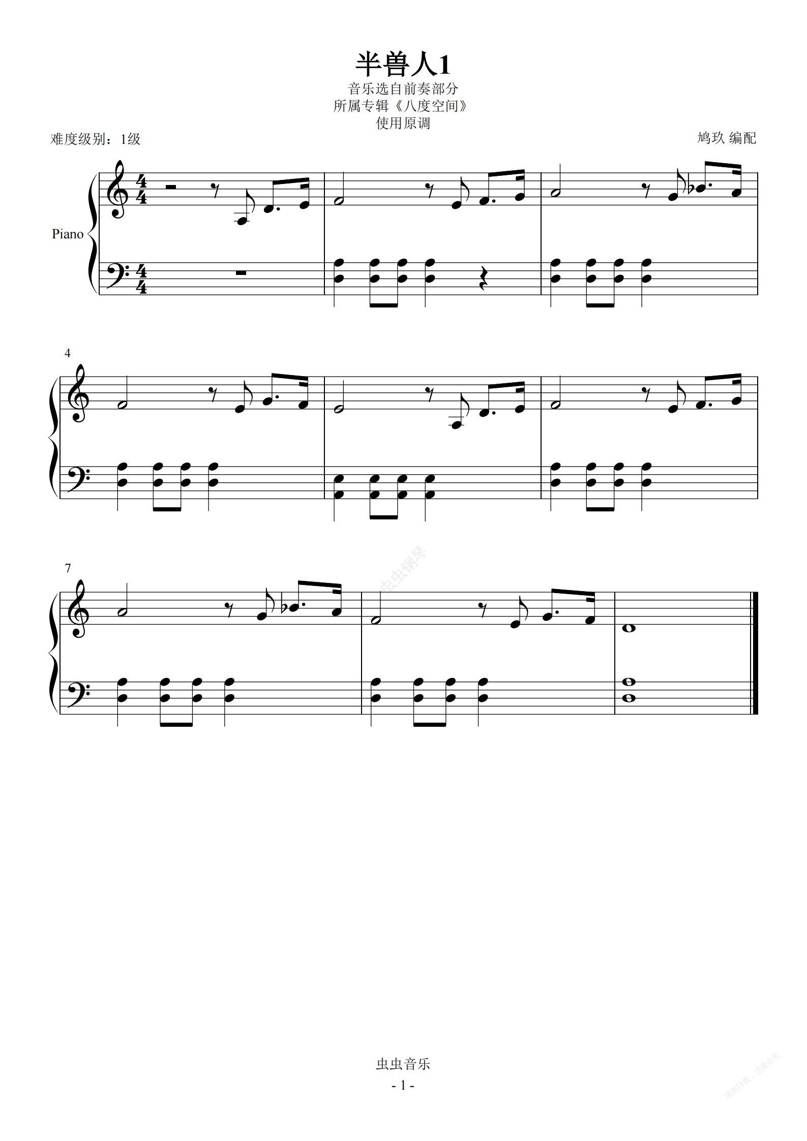 钢琴谱:1-3 半兽人1【附点八分音符与十六分音符】