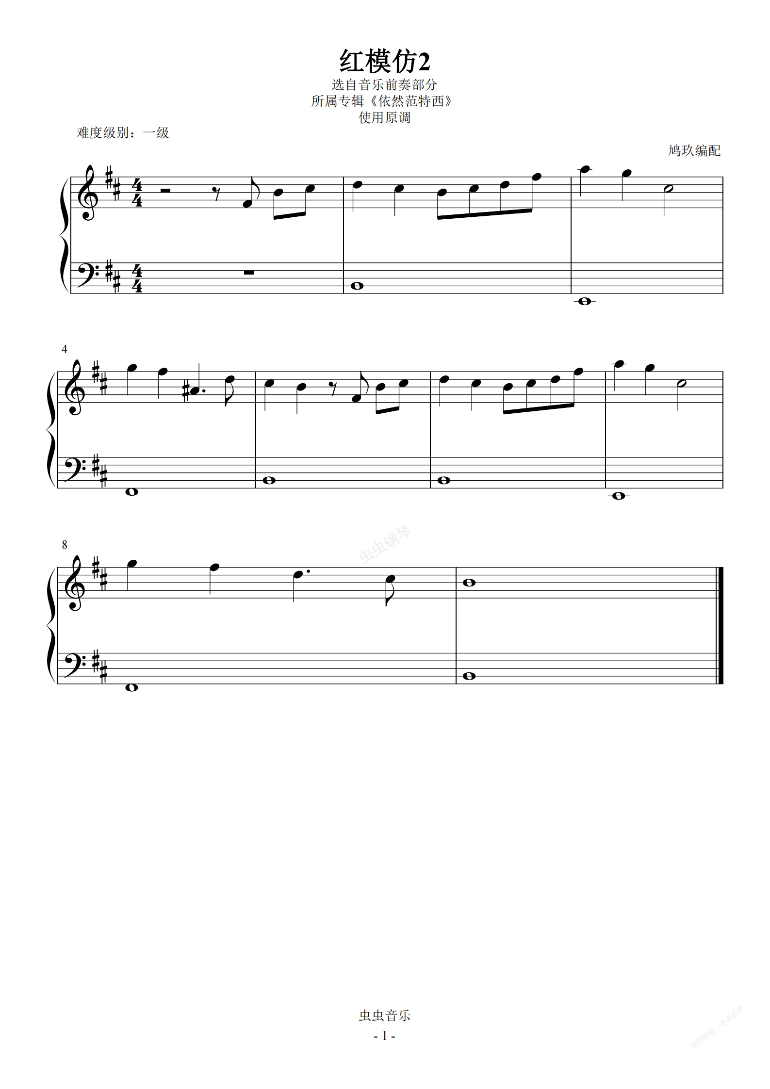 钢琴谱:1-6 红模仿2【两个升号的调号】