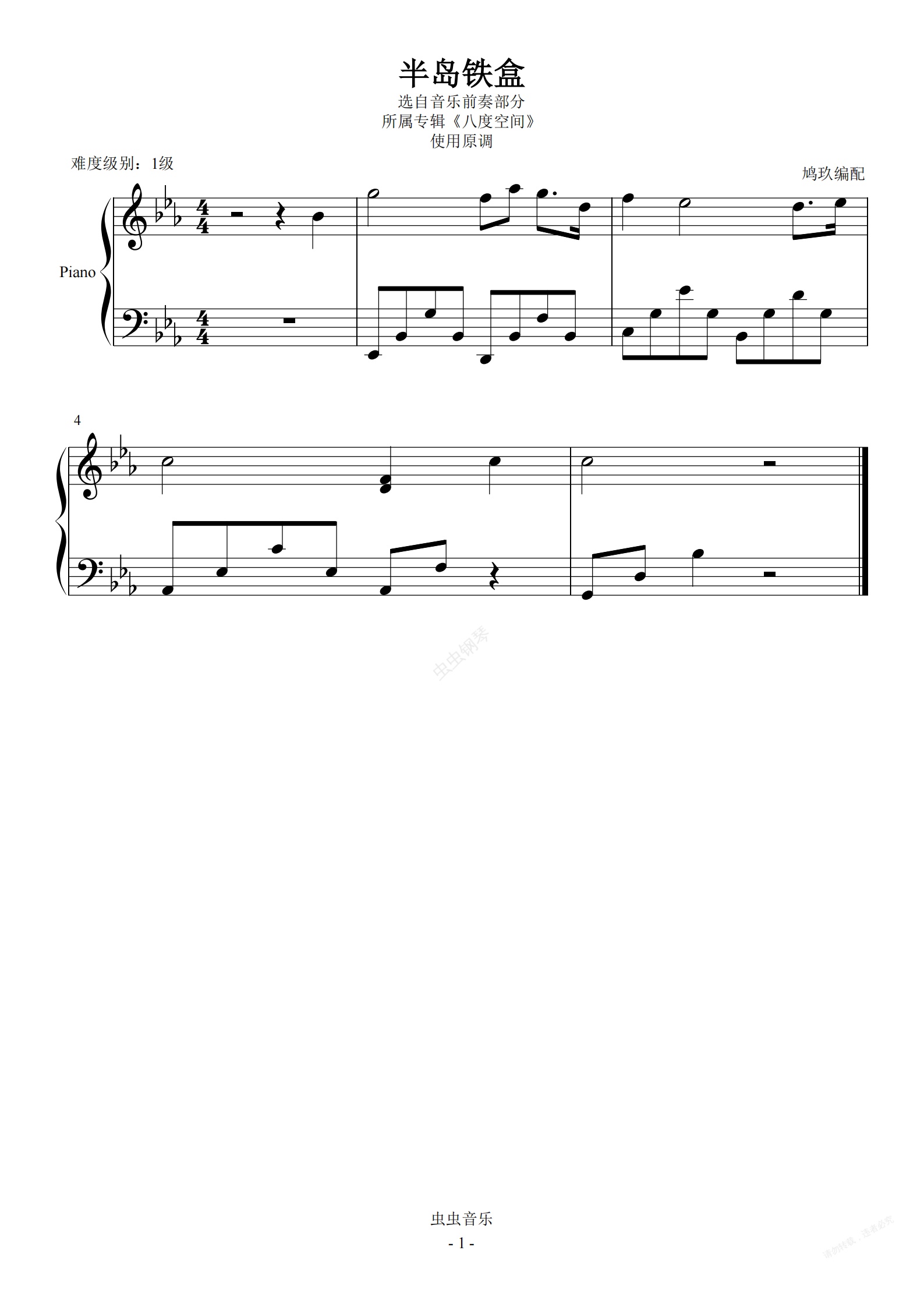 钢琴谱:1-8 半岛铁盒【组合节奏与三个降号的调号】