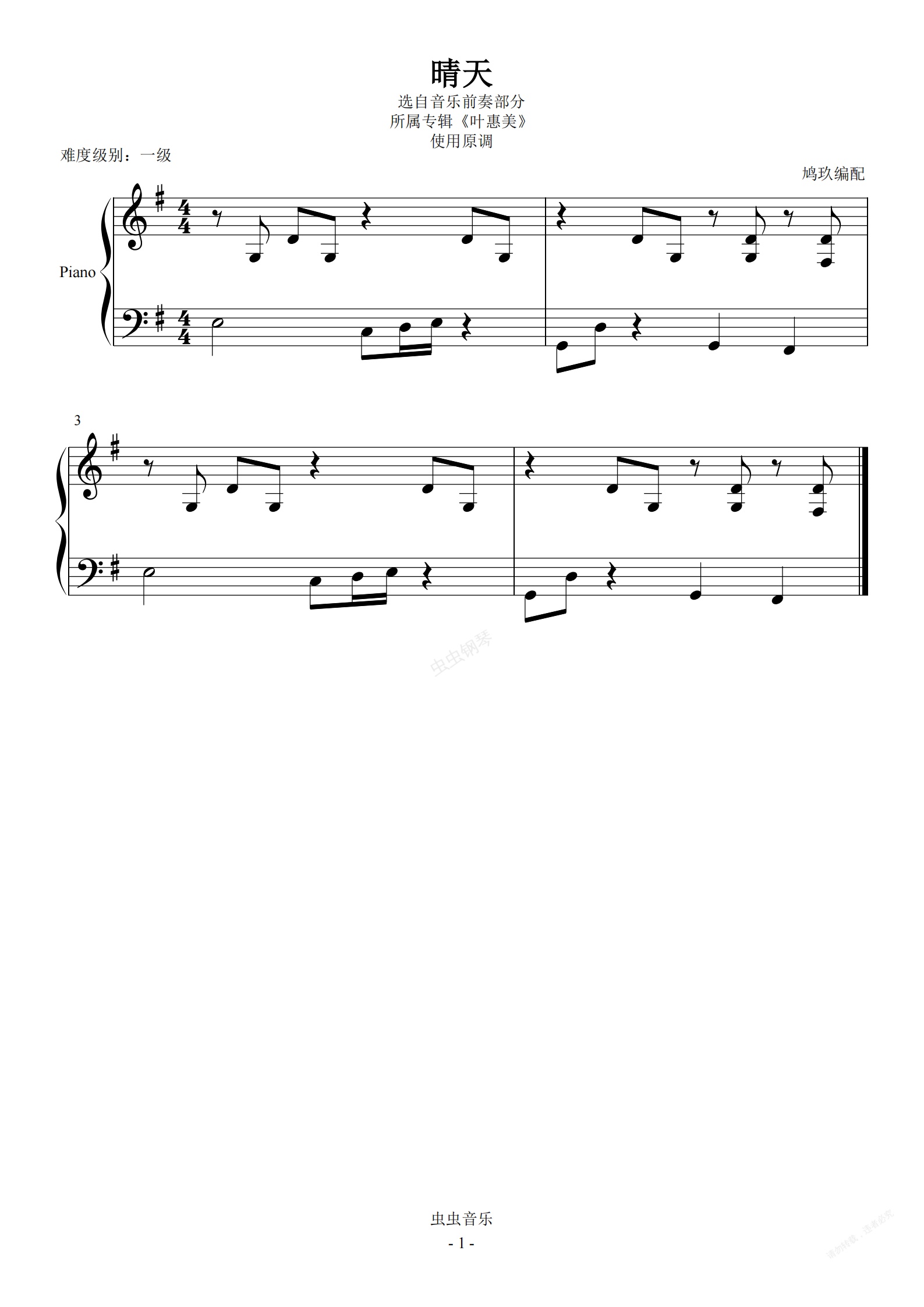 钢琴谱:1-16 晴天【左右手连接能力】