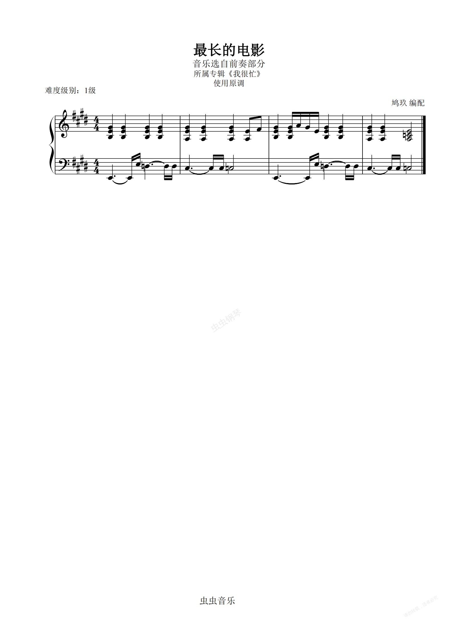 钢琴谱:1-19 最长的电影【四个升号的调号与复杂节奏】