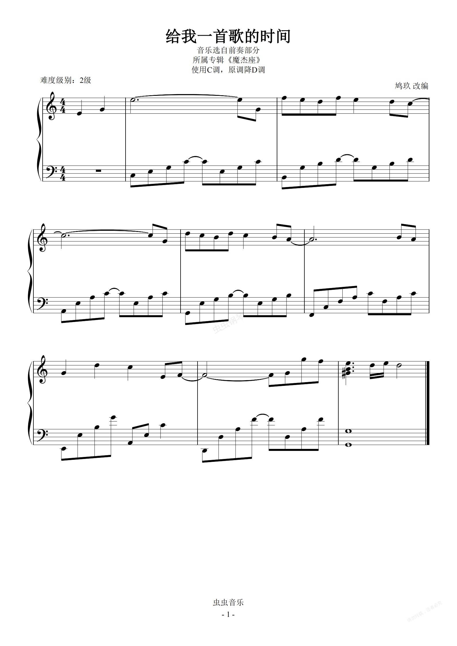 钢琴谱:2-5 给我一首歌的时间【左手位置大跳】